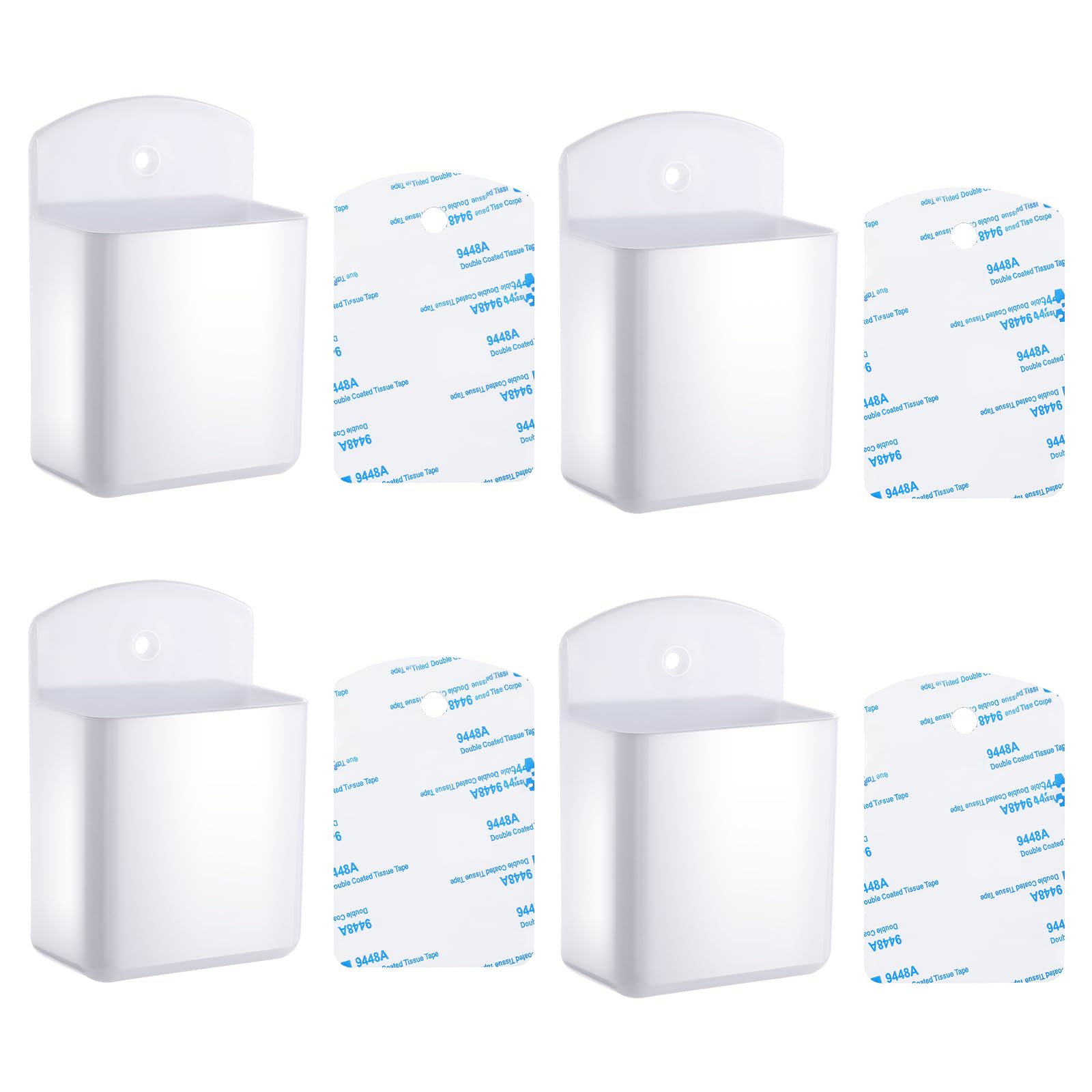 HaiFafafaing 4 Pcs Remote Control Holder Wall Mount, TV Controller Holder, Self-Adhesive ABS Storage Box Organizer for Home School Office(White)