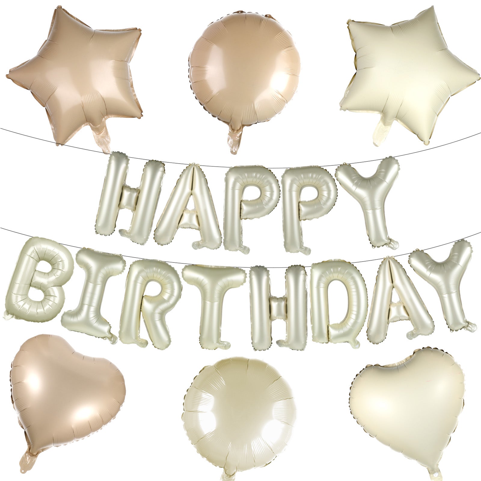 Happy Birthday Balloons Banner with Heart, Star and Round Balloon, 16 Inch Foil Letter Balloons for Men Women Birthday Party Decoration Supplies
