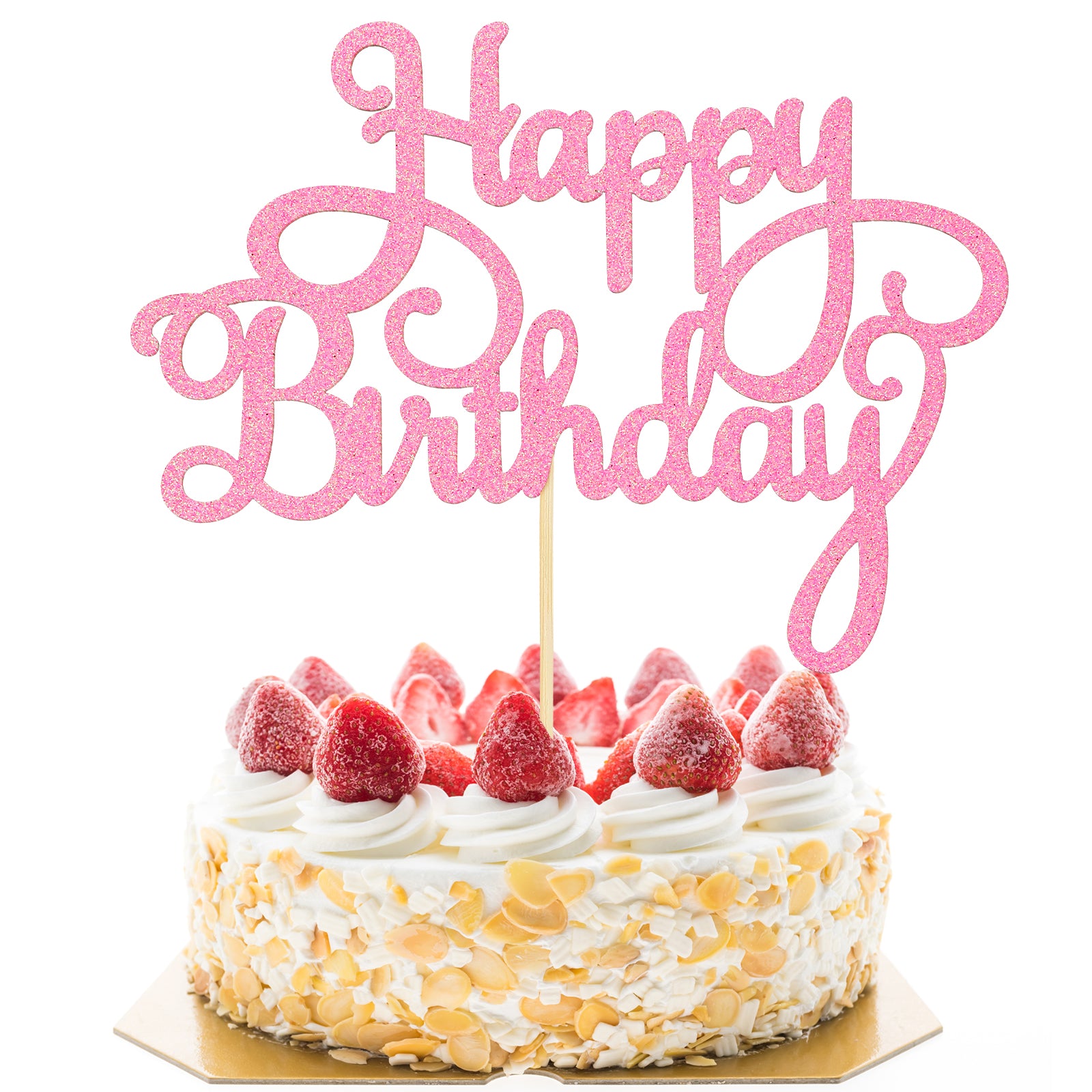 Happy Birthday Cake Topper Pink Cake Decorations Glitter Happy Birthday Cake Sign Pick Pink Cake Toppers Happy Birthday for Celebrating Anniversary Party Birthday Cake Decorations Supplies