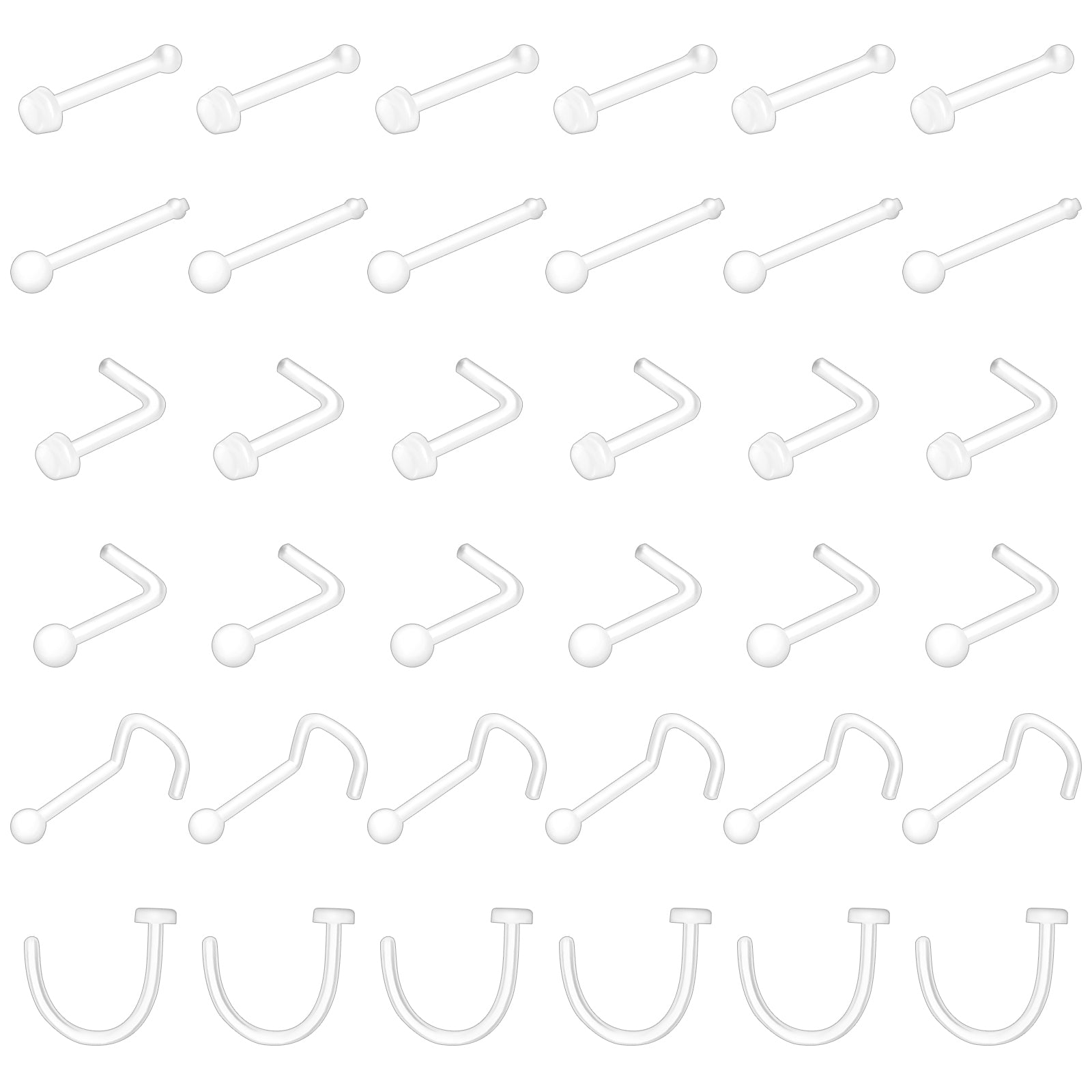 HekouJiub 36Pcs Clear Nose Studs Rings 20G Plastic Retainer Flexible Nose Rings for Work L Shape Flat Top Piercing Spacers Jewelry
