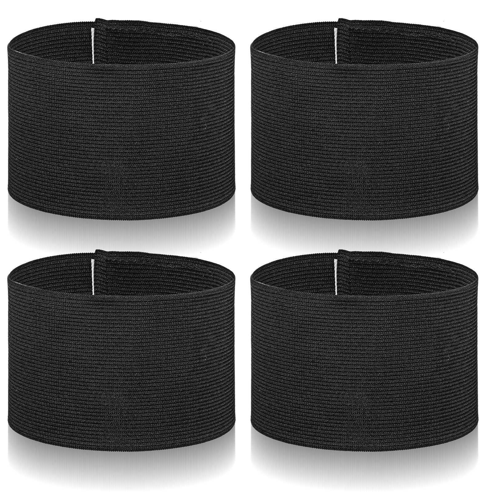 HekouJiub 4Pcs Captain Armbands 13.2x2.77 Inch Black Elastic Leader Armband Team Sport Armband Paste Elastic Arm Band Boot Straps for Cowboy Boots for Soccer Basketball Volleyball Competition