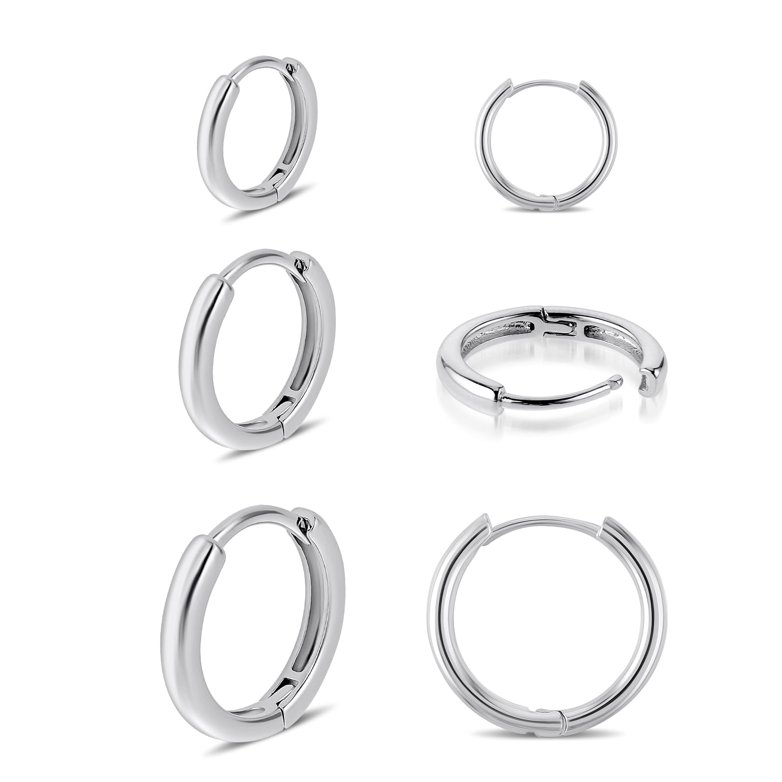 Hoop Earrings for Women 3 Pairs Silver Stainless Steel Hoop Earrings Small Round Hypoallergenic Earrings for Men Cartilage Sleepers Huggie Earrings Set 8/10/12mm