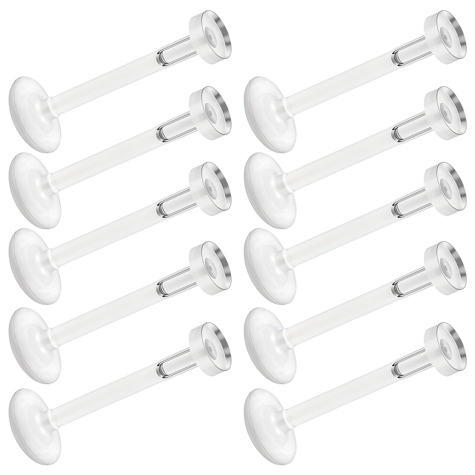 Josojoou 16Pcs Clear Earrings for Sports, 16G Flat Back Bioflex Lip Rings Labret Retainer, Clear Earrings Studs, Push Top Piercing Retainers for Women Men(6-12mm Bar Lenght)