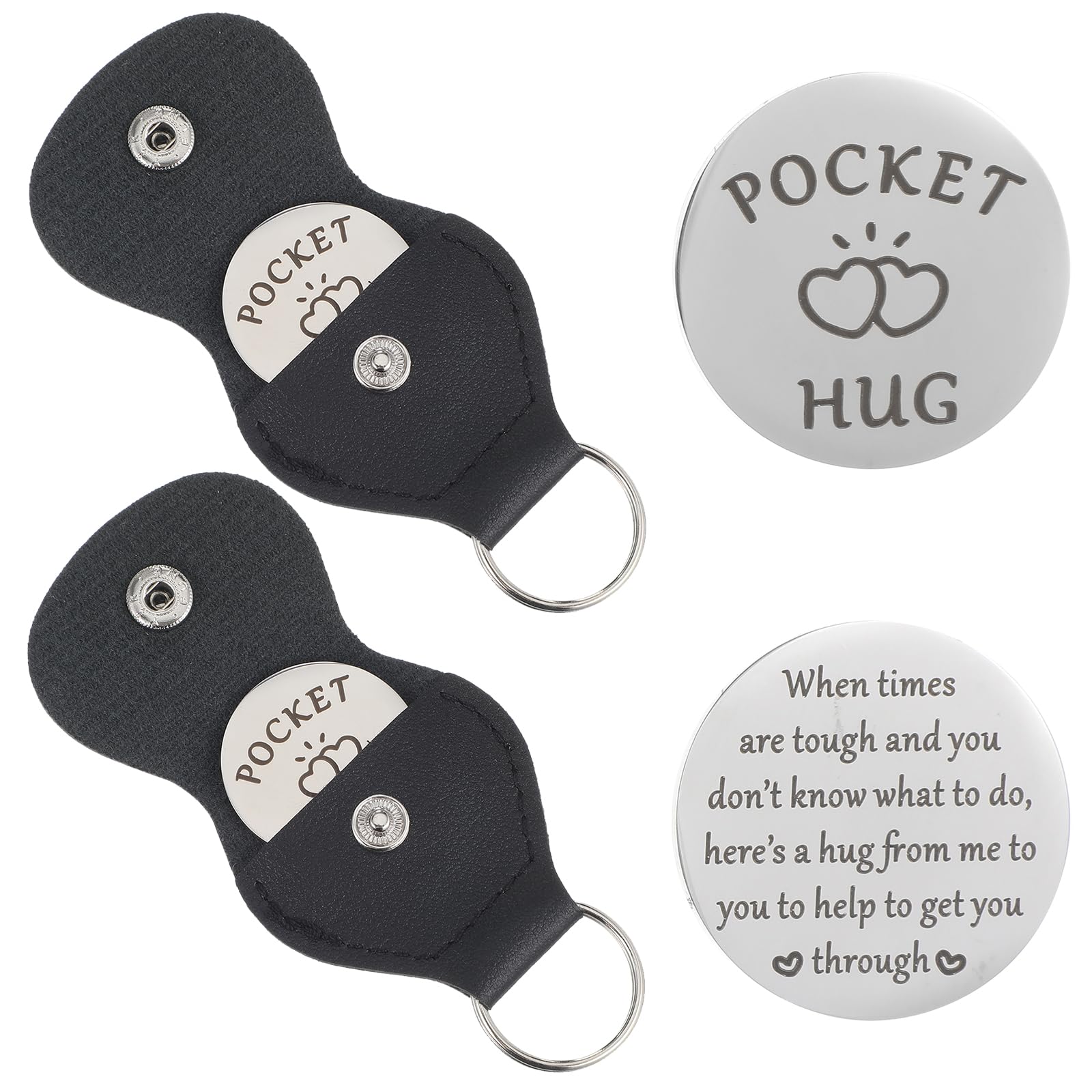 Josojoou 2pcs Pocket Hug Token Pocket Hugs for Friends with Leather Keychain Long Distance Relationship Keepsake Stainless Steel Double Sided Inspirational Gift