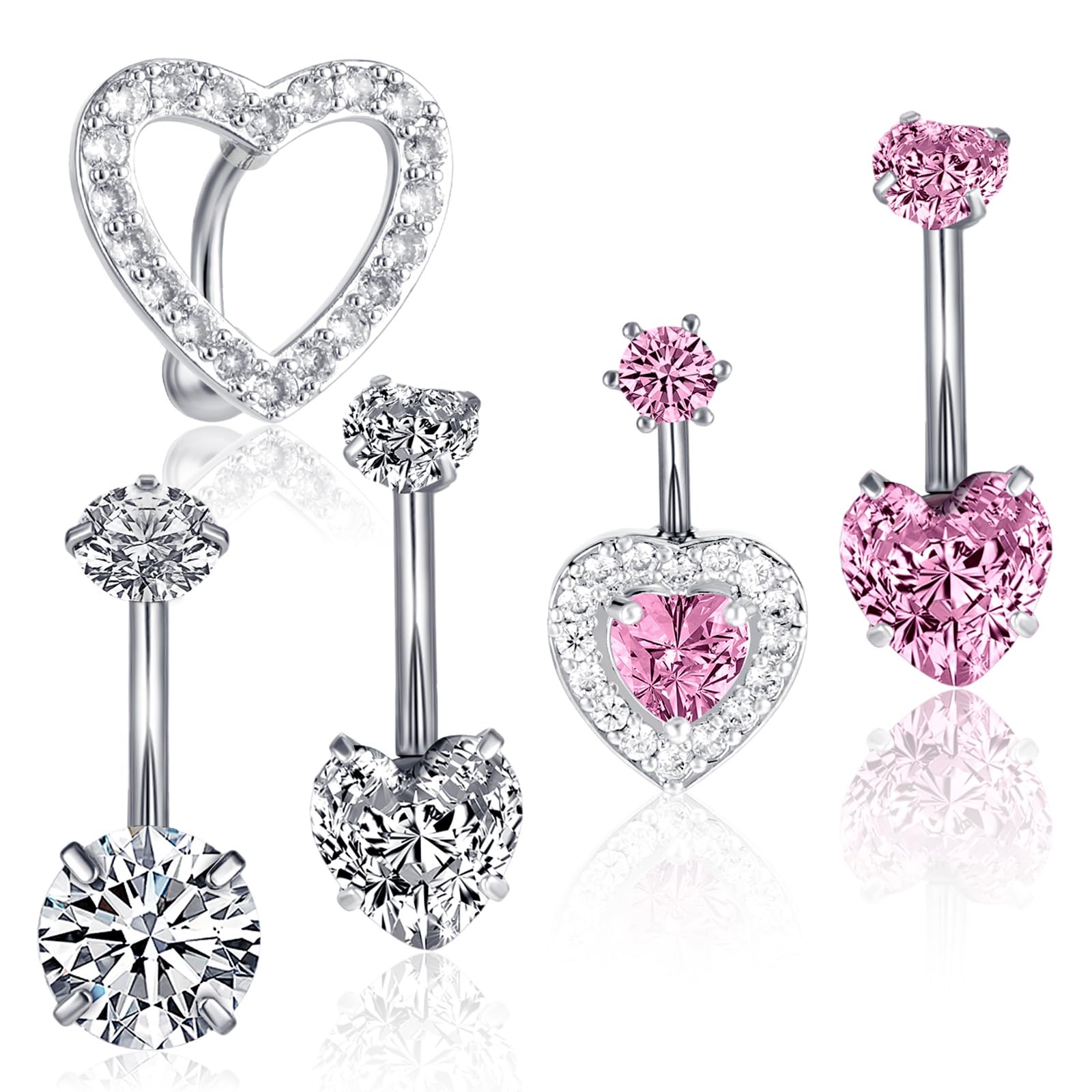 Josojoou Cute Pink Heart Belly Button Ring Surgical Stainless Steel Rings 14G Dangling Belly Ring Pack for Women Navel Piercing Jewelry