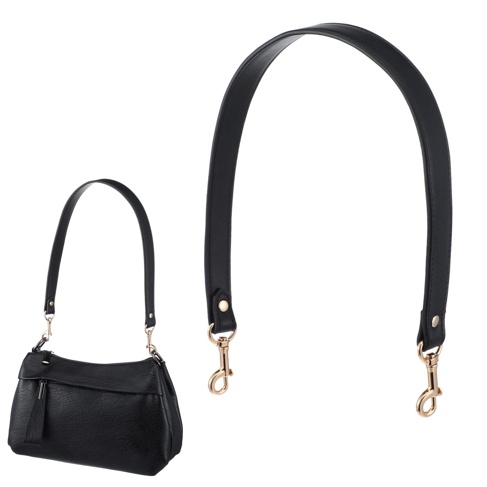 Josojoou Leather Purse Strap, Straps for Purses with Lobster Clasp, 23 Inch Leather Straps for Bags for Wallets, Tote Bag, Shoulder Bags (Black)