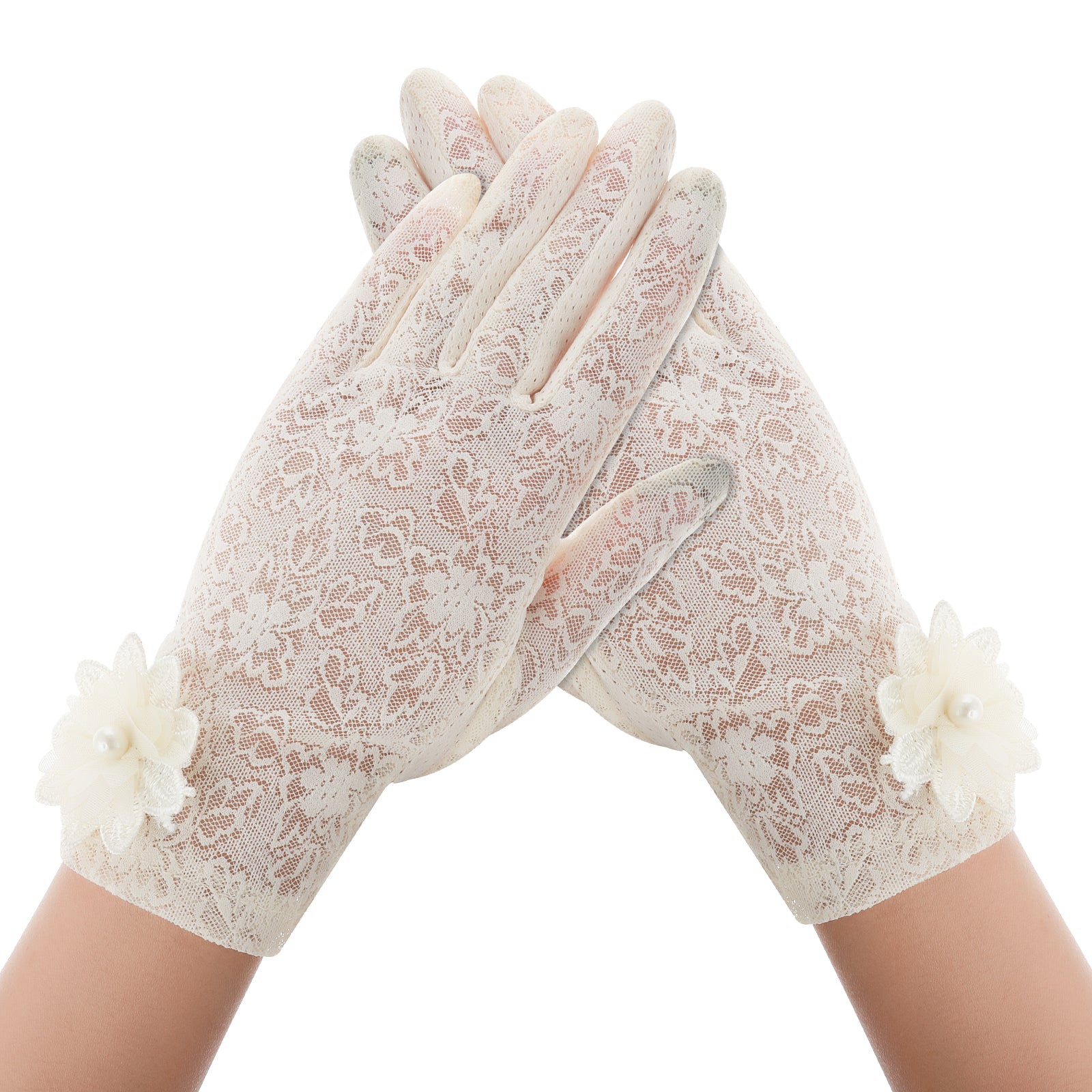 Lace Gloves Women Tea Party Gloves Elegant Short Floral Gloves Wrist Length Bridal Sunblock Wedding Gloves for Halloween Wedding Party Opera Prom Dinner Evening Cosplay Funeral Masquerade(Skin Color)