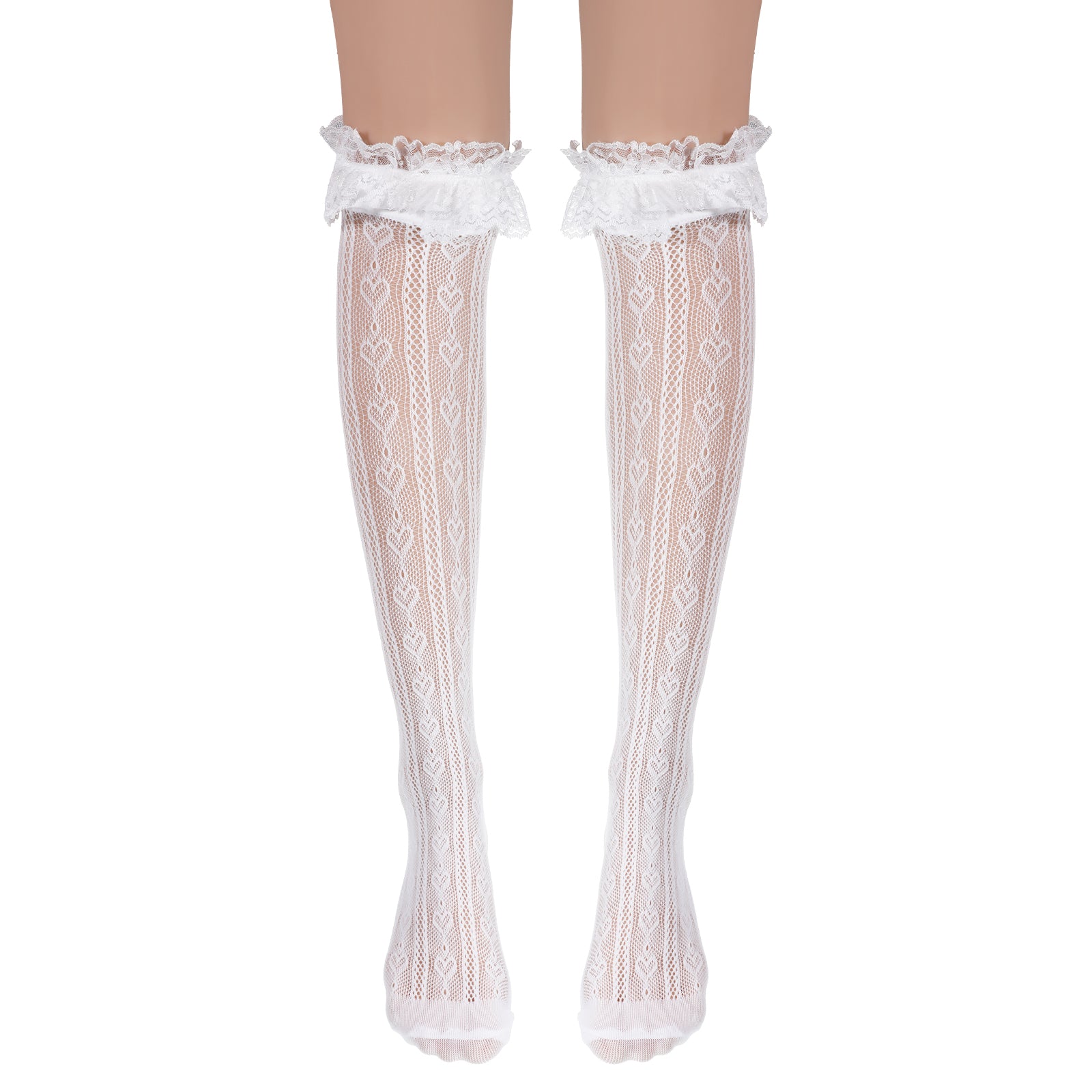 Packaging Contents: 1 pair of white heart-shaped over-the-knee socks, thigh high socks white