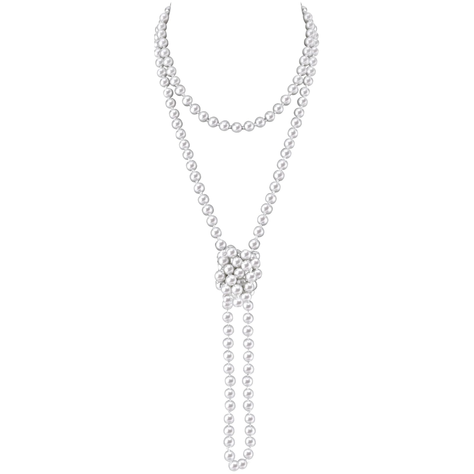 Long Beaded Pearls Necklace 1920s Flapper Pearl Necklace for Women Girls Vintage Costume Pearl Strand Necklace Layered Fashion White Faux Pearls Chain Necklaces 1920s Jewelry Accessories 63 inch Long