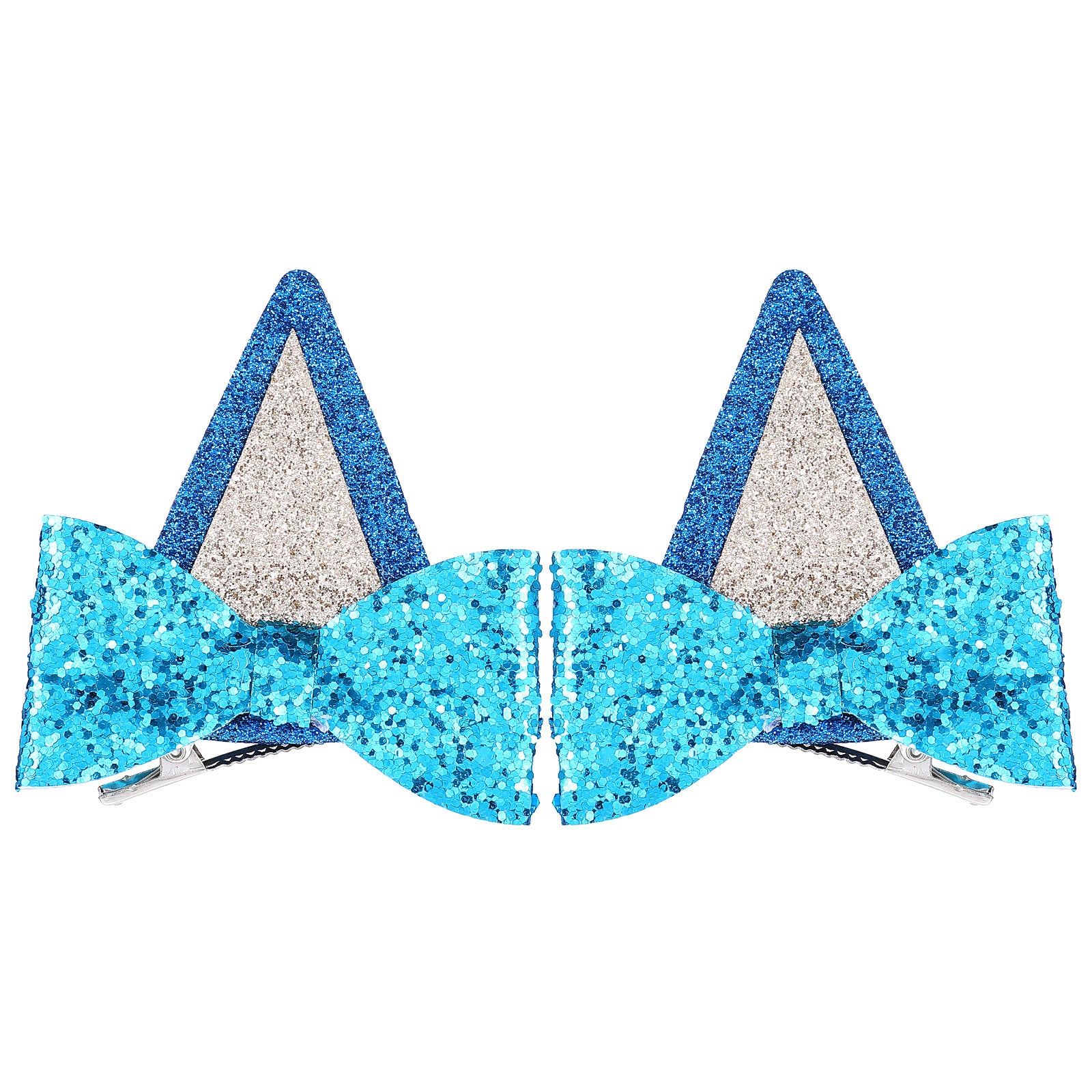 Lusofie 1 Pair Blue Ears Hair Clip Glitter Blue Ears for Kids Blue Bow Hair Barrettes Birthday Decorations Halloween Costume Cosplay Accessories Party Supplies