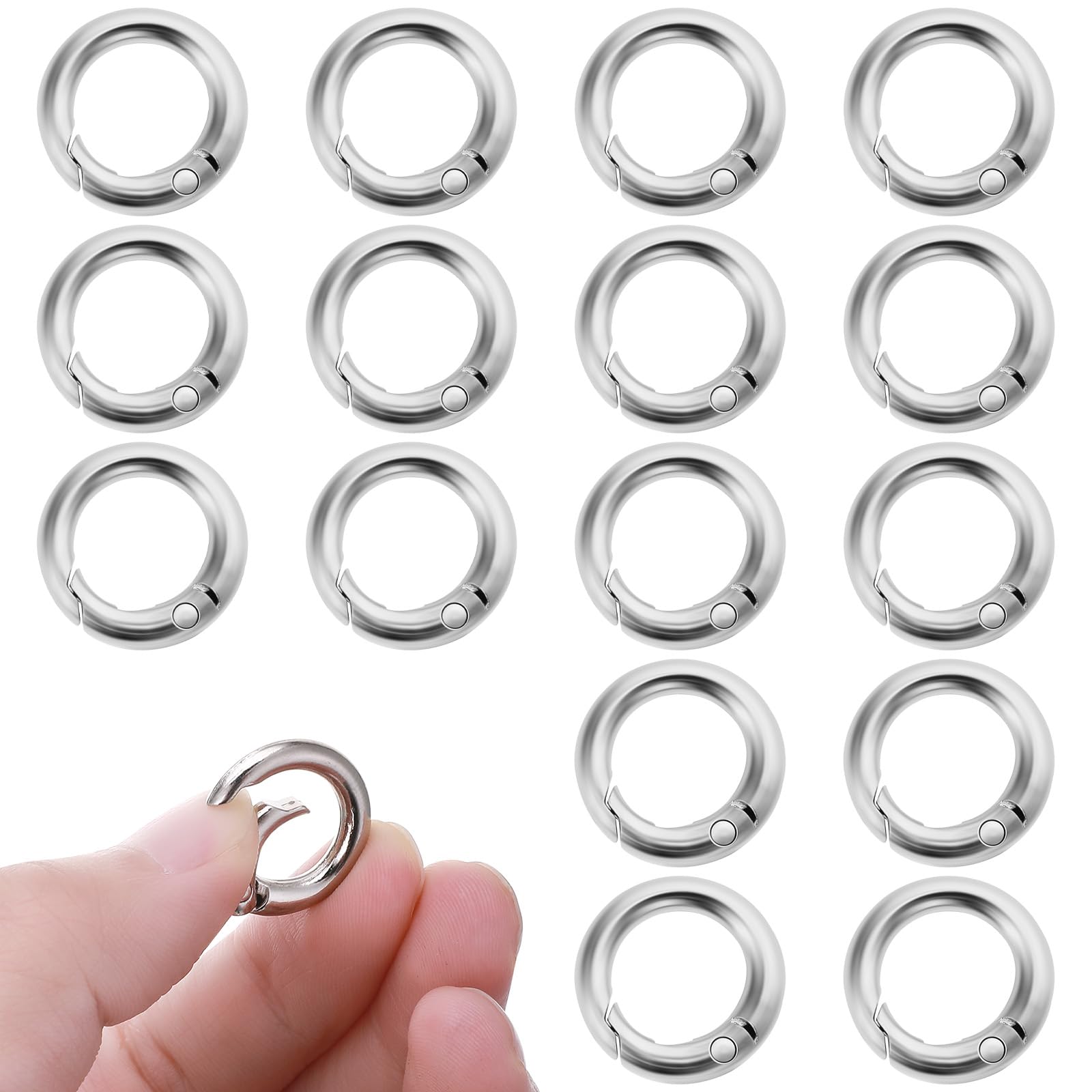 Lusofie 16 Pcs O Rings Metal Key Ring Clip Mini Circle Clips Spring Snap Clip Hooks for Gate Rings Purse Hardware