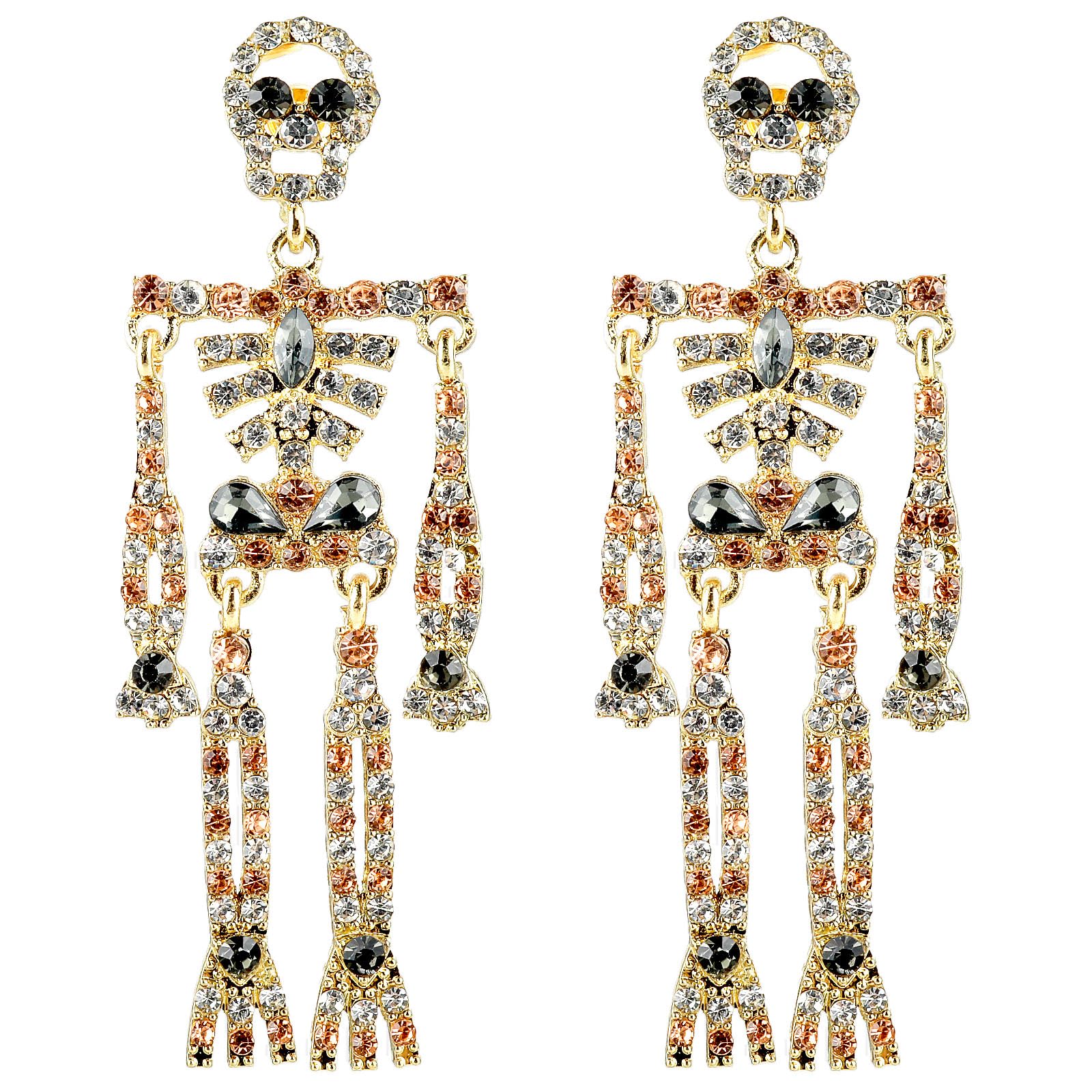 Lusofie 1Pair Halloween Skeleton Earrings Crystal Skull Dangle Earrings Bling Rhinestone Halloween Earrings for Women
