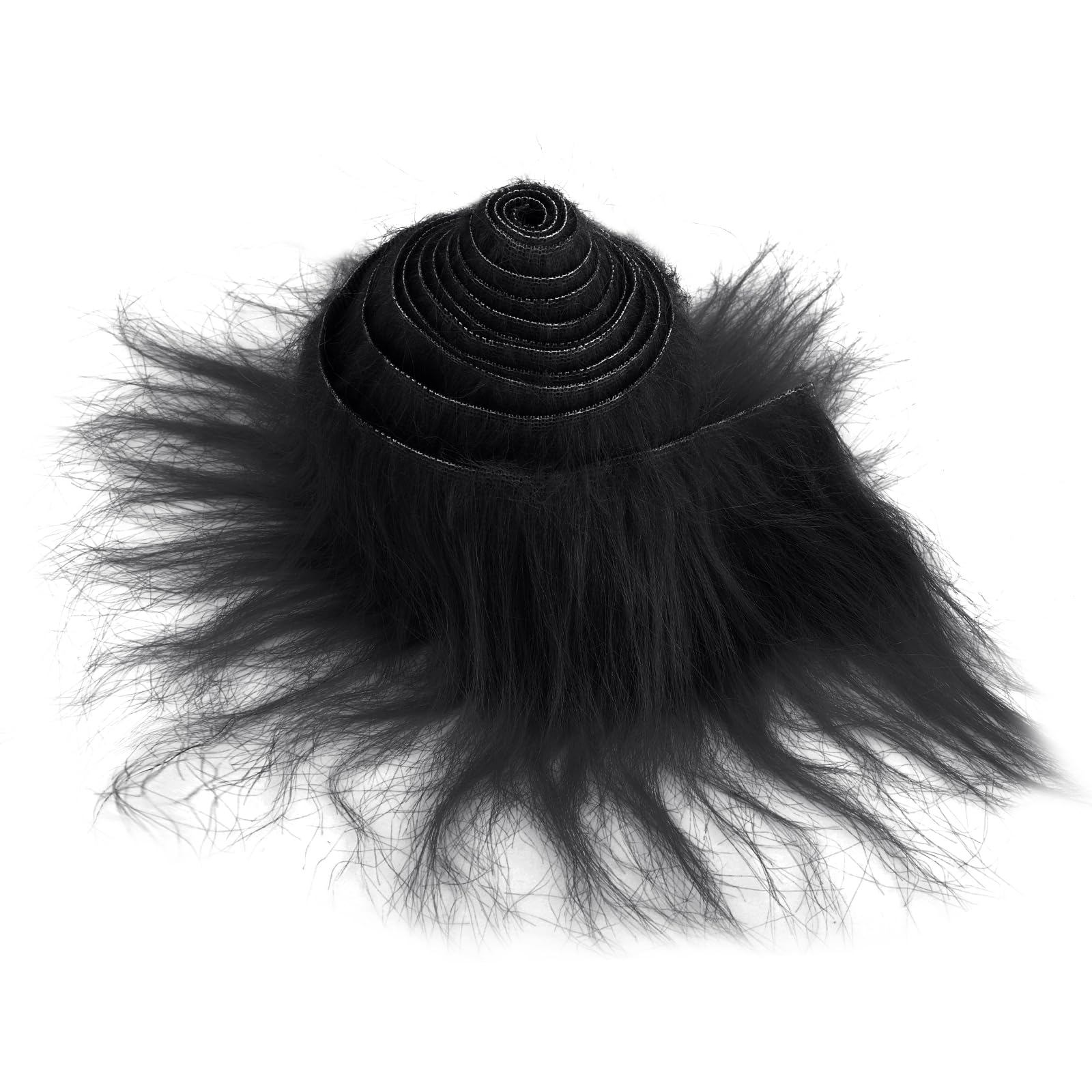 Lusofie 1Pc Shaggy Plush Faux Fur Fabric Precut Strips 2x71inch Black Fur Fluffy Fuzzy Craft Fur for Gnomes Beard Santa Claus Hair Dwarf Cosplay Costume DIY Craft Decoration (Black)