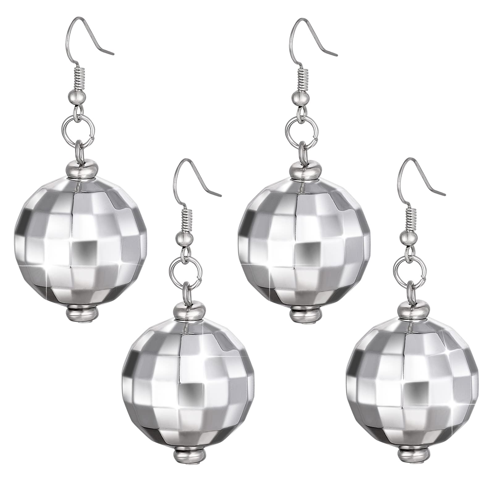 Lusofie 2 Pair Silver Disco Ball Earrings 0.94In Mirrorball Earrings 70s 80s Dance Party Disco Earrings for Women Costume Accessories