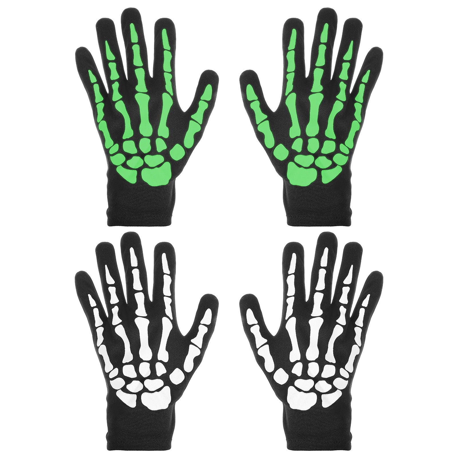 Lusofie 2 Pairs Skeleton Gloves, Full Finger Skull Gloves, Glow In The Dark Halloween Bone Glove, Cosplay Costume Accessories for Halloween, Cycling, Skiing, Hiking for Men Women