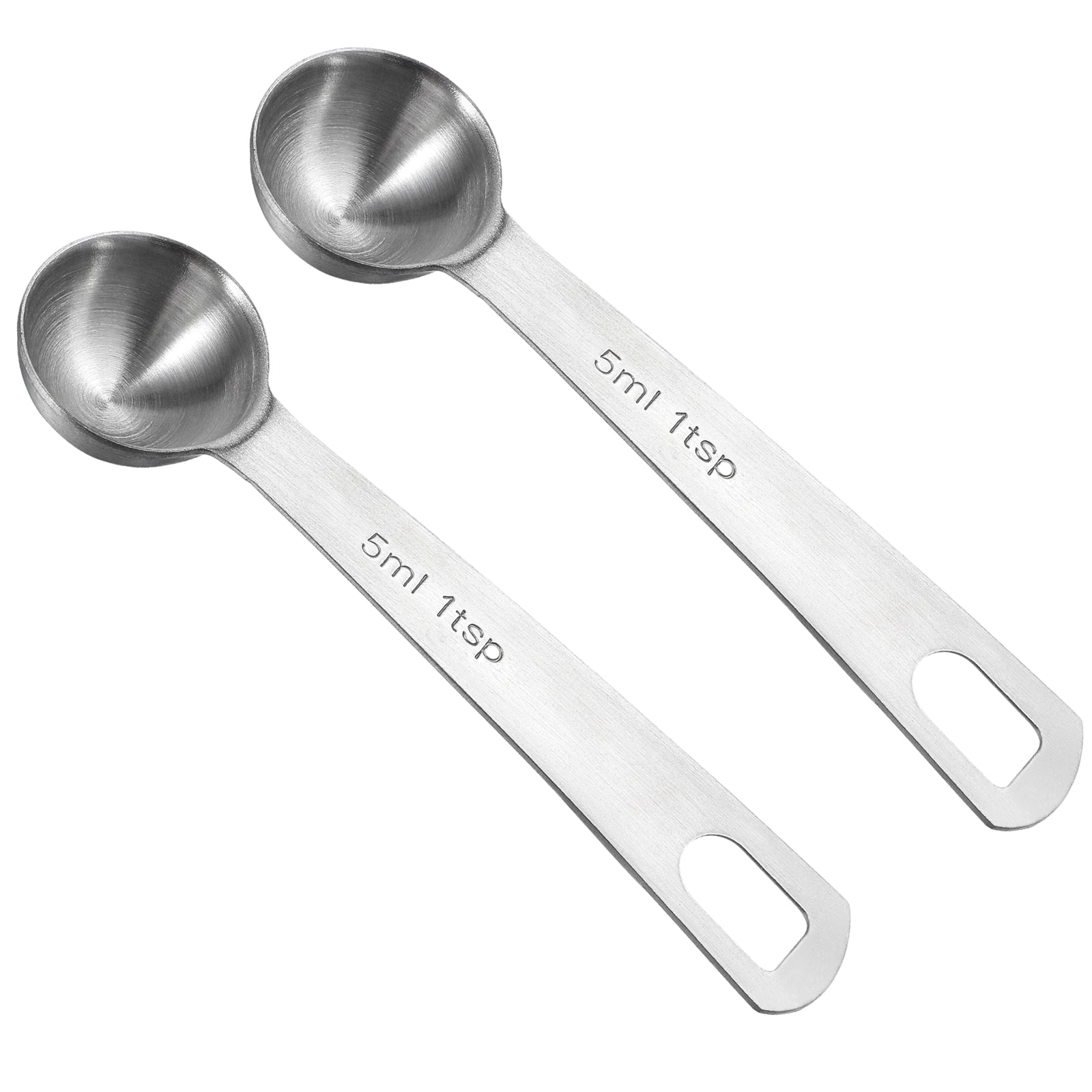 Lusofie 2 Pcs 1 Teaspoon Measuring Spoons 5ml Mini Spoons Stainless Steel Measuring Spoons for Kitchen Cooking Spoon Coffee Spoon (Silver)