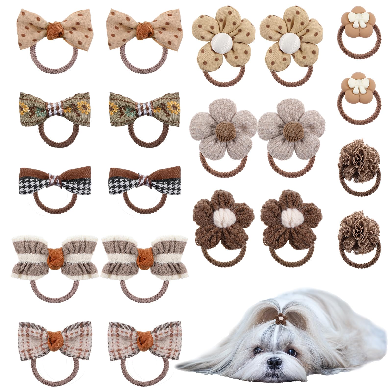 Lusofie 20 Pcs Dog Hair Bows Brown Dog Bows With Rubber Bands Flower Dog Hair Ties Puppy Hair Bows Dog Bows Small Size Dog Hair Accessories