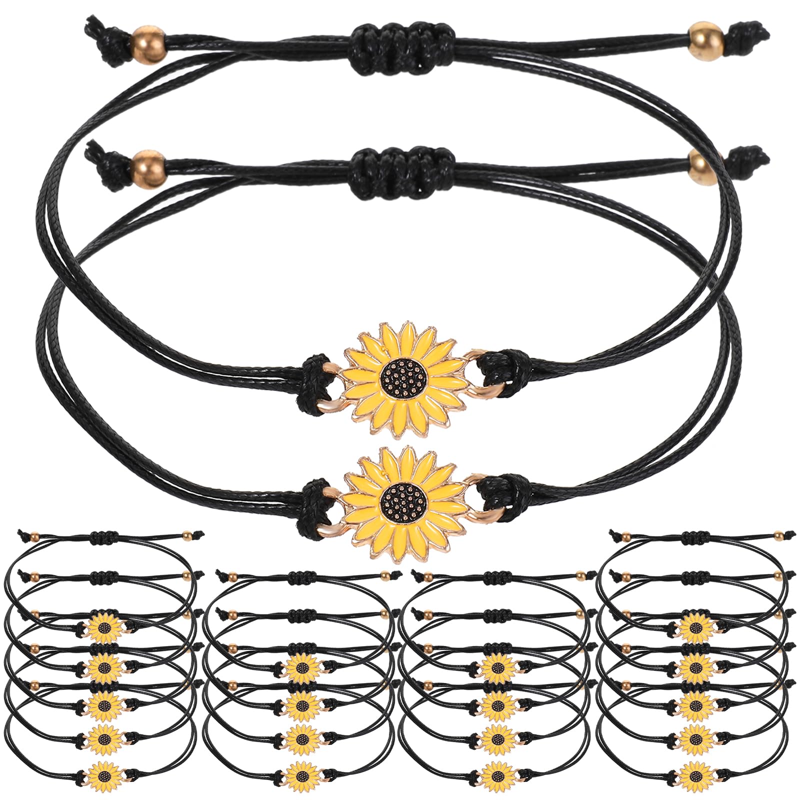 Lusofie 20 Pcs Sunflower Bracelets Adjustable Handmade Friendship Bracelet Bulk Boho Braided Rope String Bracelets Handmade Friendship Bracelets for Women Girls Summer Party Gift Favors