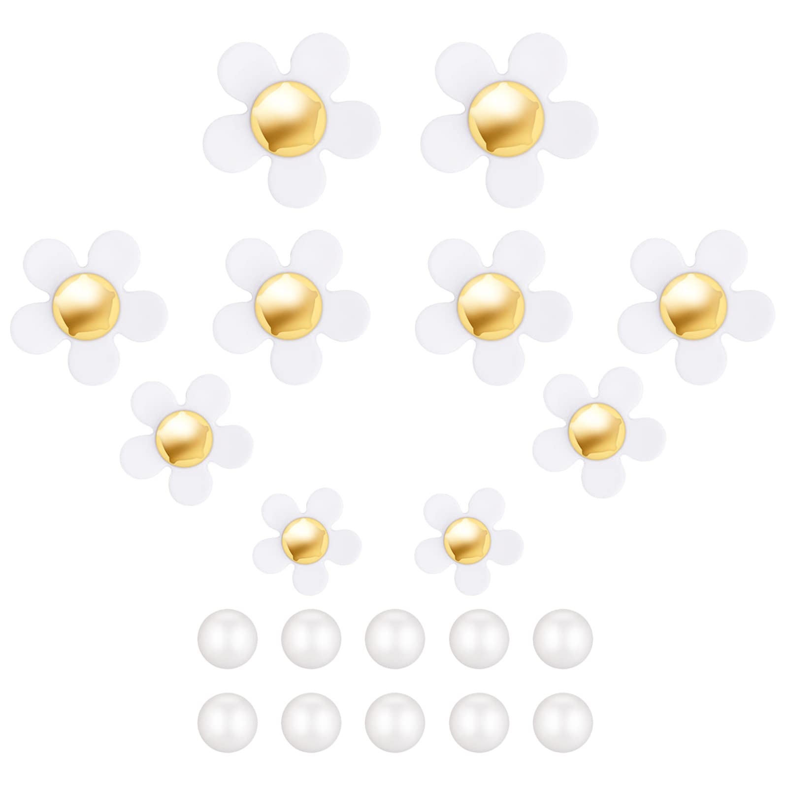 Single product size: flower 38mm/1.5in, 27mm/1.06in, 22mm/0.87in, 18mm/0.71in, pearl 15mm/0.59in