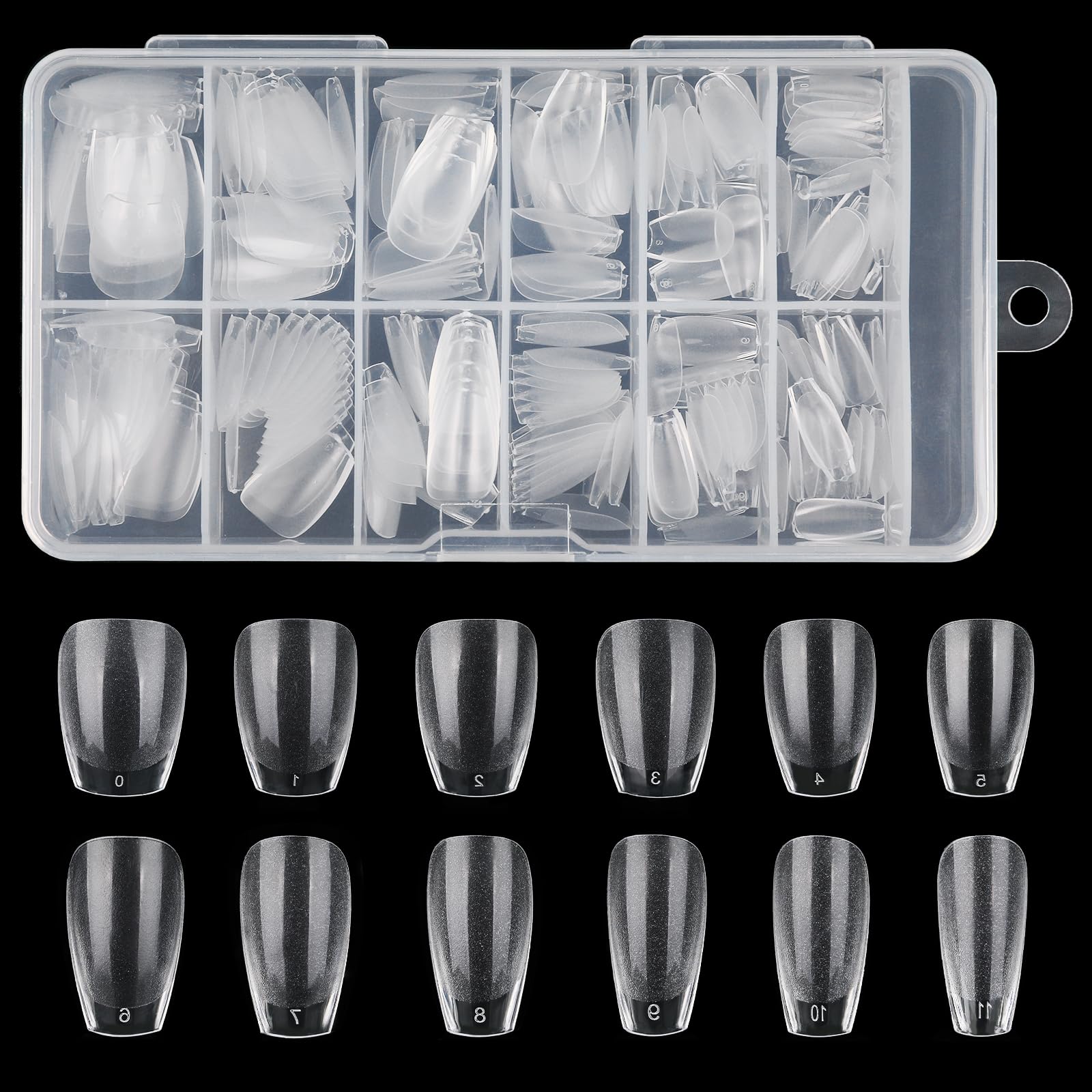 Lusofie 240Pcs Extra Short Coffin Nail Tips Pre-Filed Half Matte Short Coffin Nail Tips Clear Acrylic Full Cover Fake Soft Gel Nail Tips for Nail Extensions(XS)