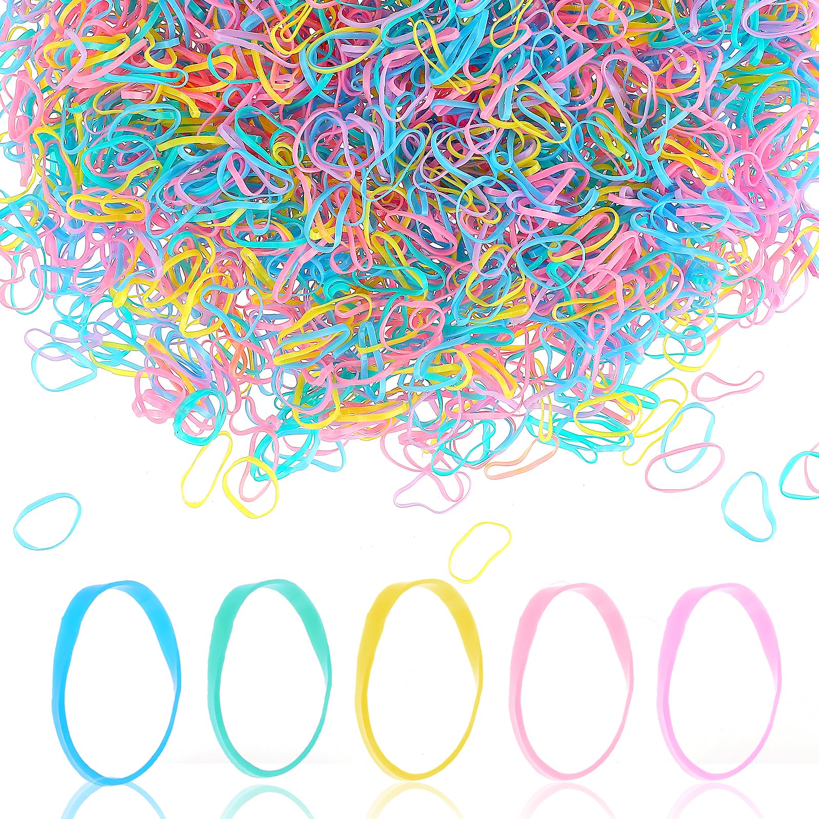 Lusofie 2500Pcs Colorful Hair Elastic Bands Small Clear Elastic Hair Bands Soft Baby Elastic Hair Ties Hair Bands for Girls, Kids, Braids Hair, Wedding Hairstyle