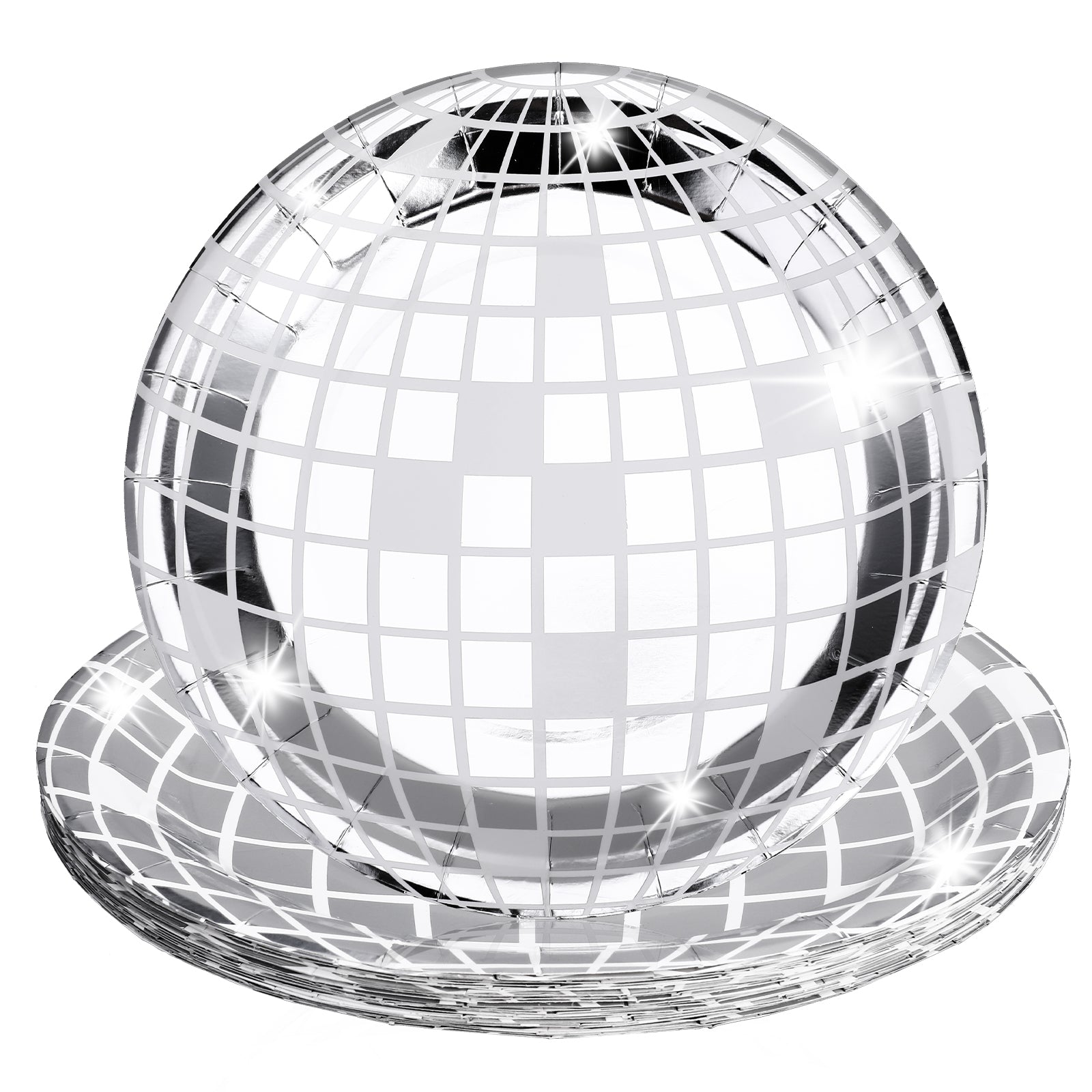 Lusofie 25Pcs Disco Ball Paper Dinner Plates, 23cm/9inch Silver Paper Plates, Disposable Disco Ball Plates, Disco Party Supplies Bachelorette Plates Decorations for Birthday Reunion Party