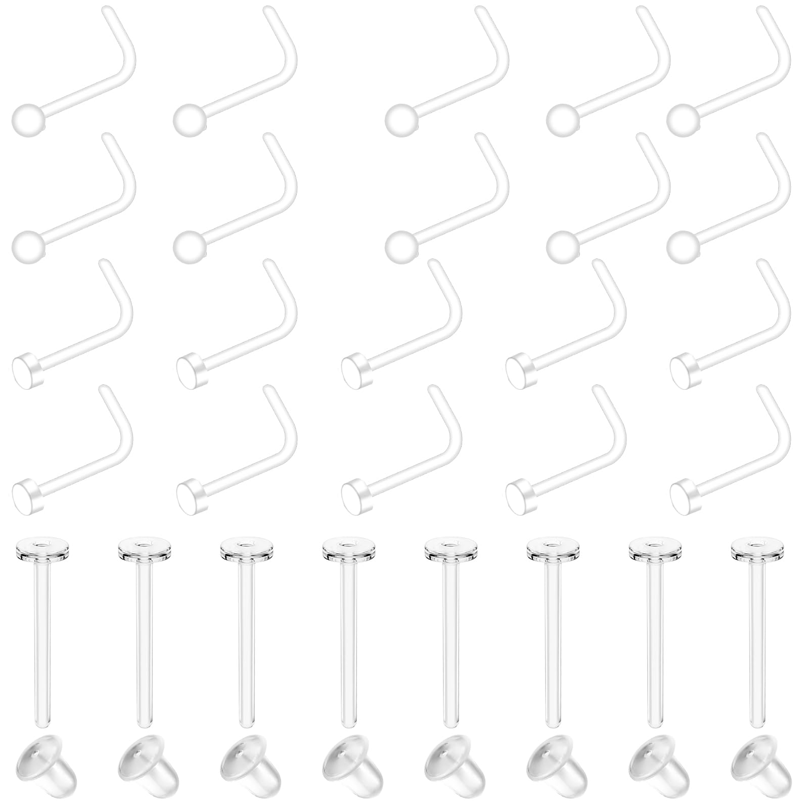 Lusofie 28Pcs Clear Nose Studs Nose Rings for Work, Acrylic Clear Nose Piercing Clear Piercing Retainer L Shape Invisible Clear Cartilage Earrings for Surgery(20G)