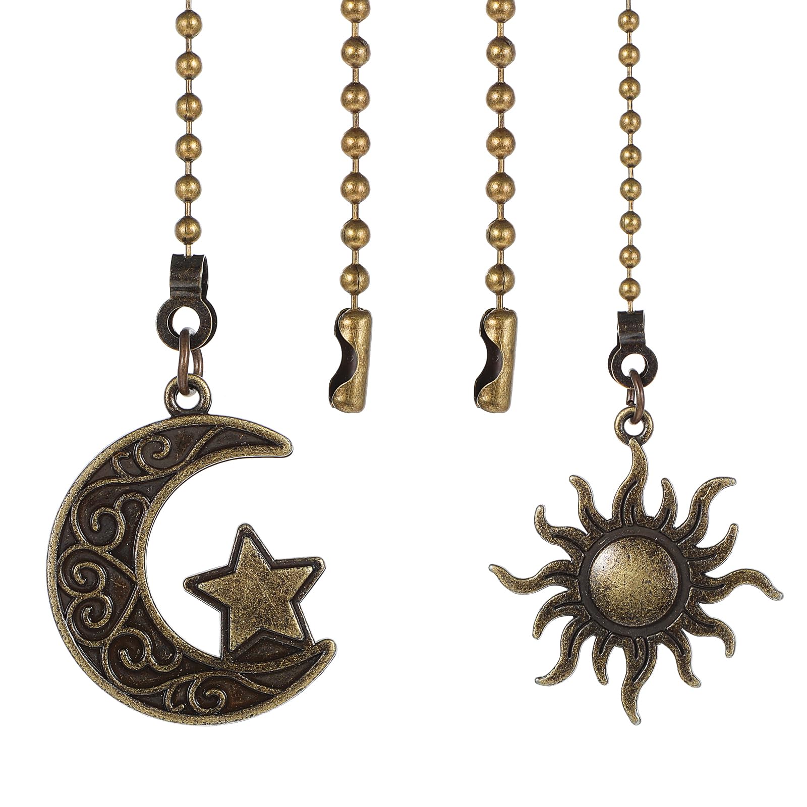 Lusofie 2Pack Ceiling Fan Pull Chain Extender Copper Totem Bohemia Fan Pull Chain Extension 13.6" Retro Sun Moon Ceiling Fan Chain Extenders for Light Fan Pulls Decorative