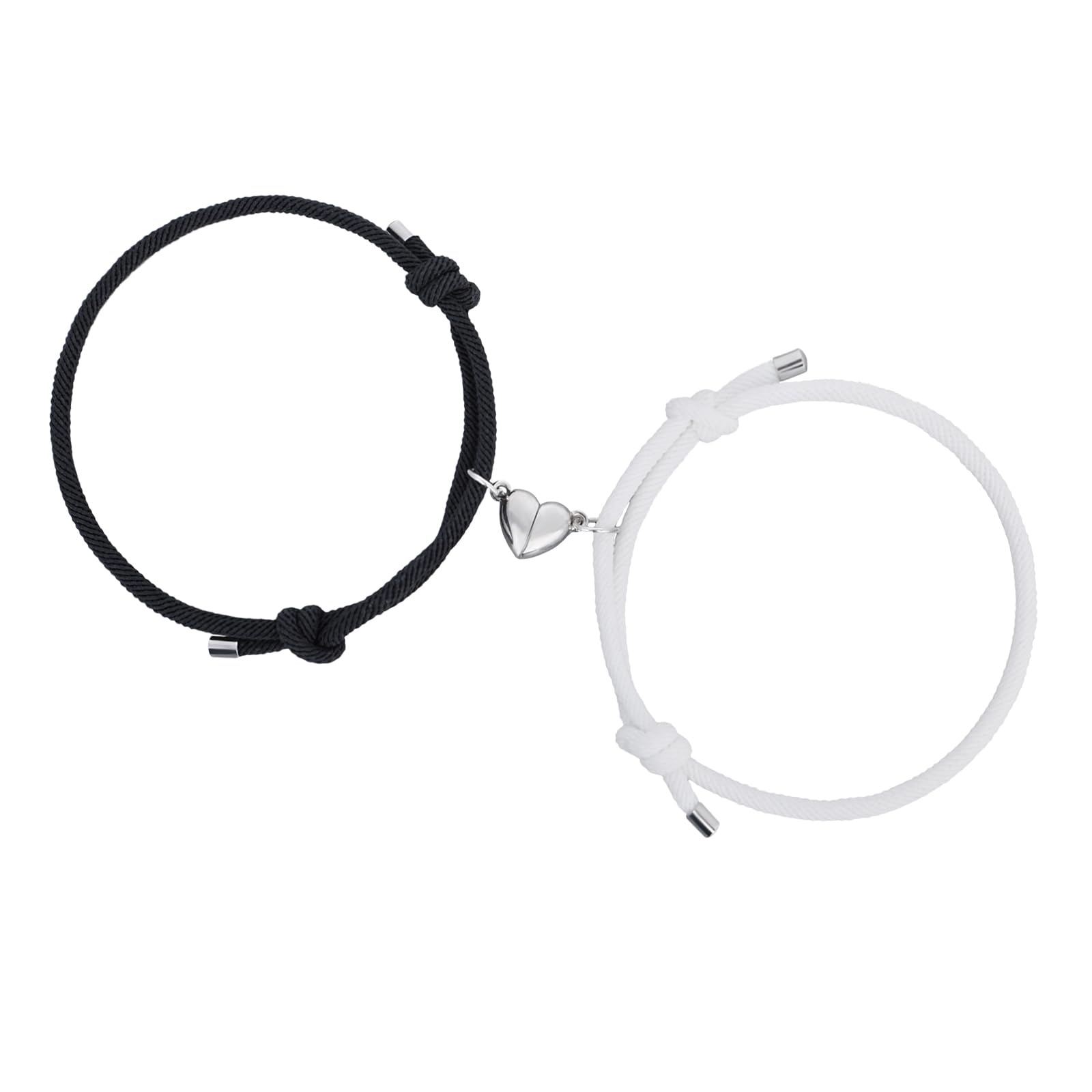 Lusofie 2pcs Couples Bracelets for Women Men, Heart Bracelets for Couples, Matching Bracelets for Best Friend Boyfriend and Girlfriend (black and white)