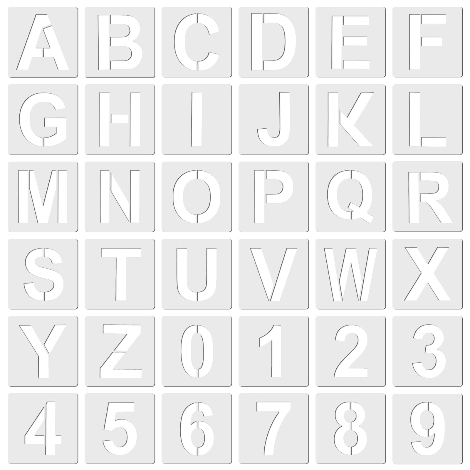 Lusofie 3 Inch Number Letter Stencils 36 Pcs Reusable Alphabet Stencils Plastic Stencils for Painting On Wood Wall Fabric Chalkboard Signage Door Glass DIY Craft Decoration