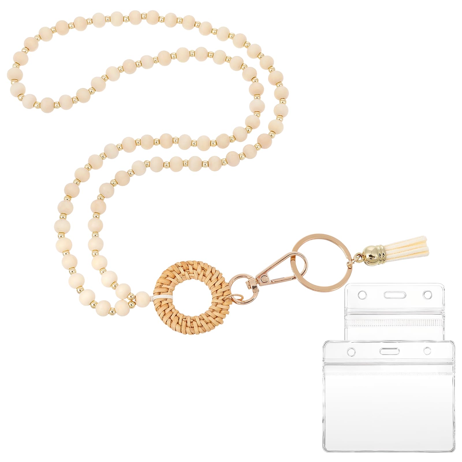 Lusofie 3 Pcs Beaded Lanyards for ID Badges Teacher Lanyard with ID Holder Breakaway Lanyards for ID Badges Badge Lanyards for Women