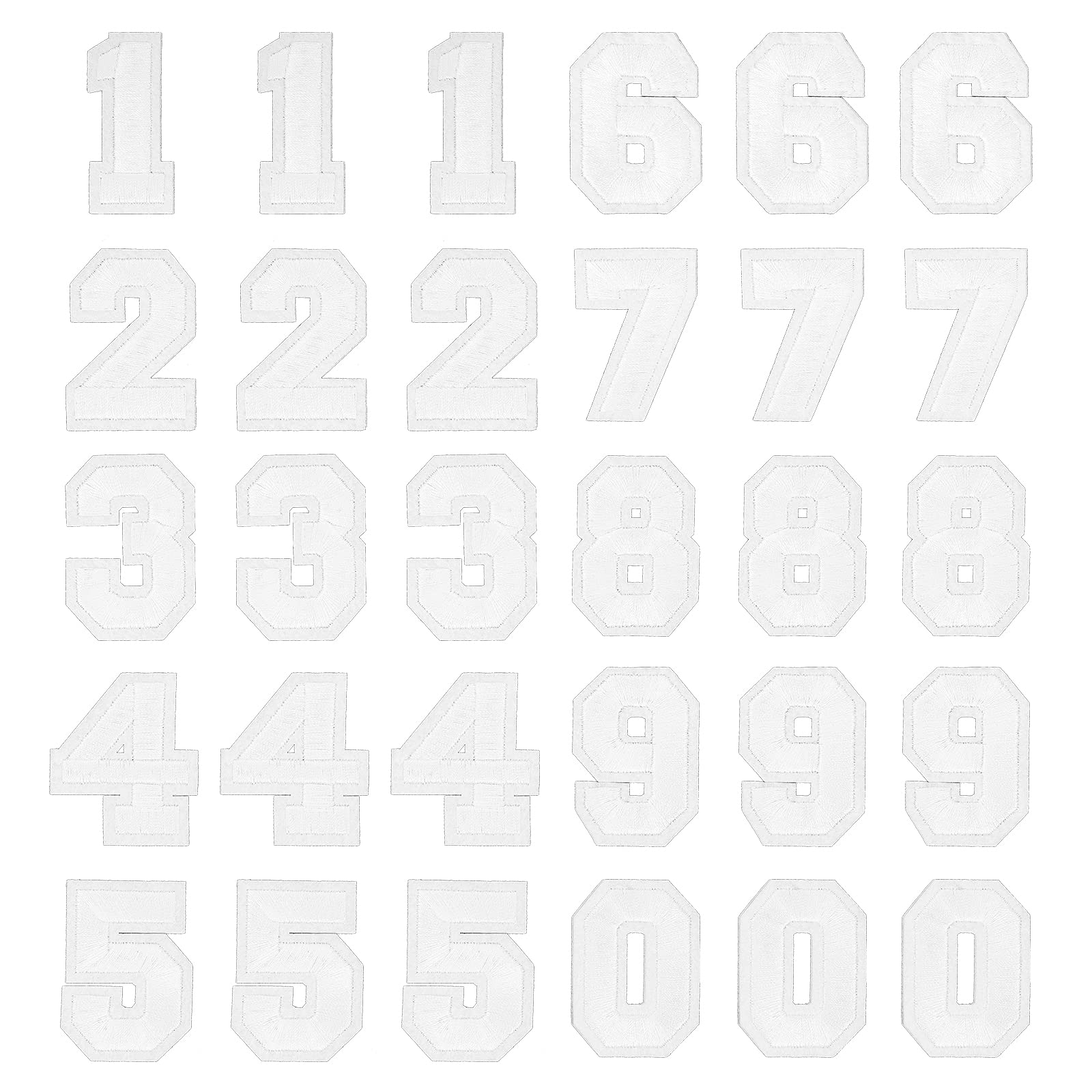 Lusofie 30pcs Iron On Numbers White Number Patch 0-9 Numbers Decorative Patch Sewing Embroidery Applique Patches for Jeans Hats Jackets Backpacks Shirts Bags Crafts (White, 2 Inch)
