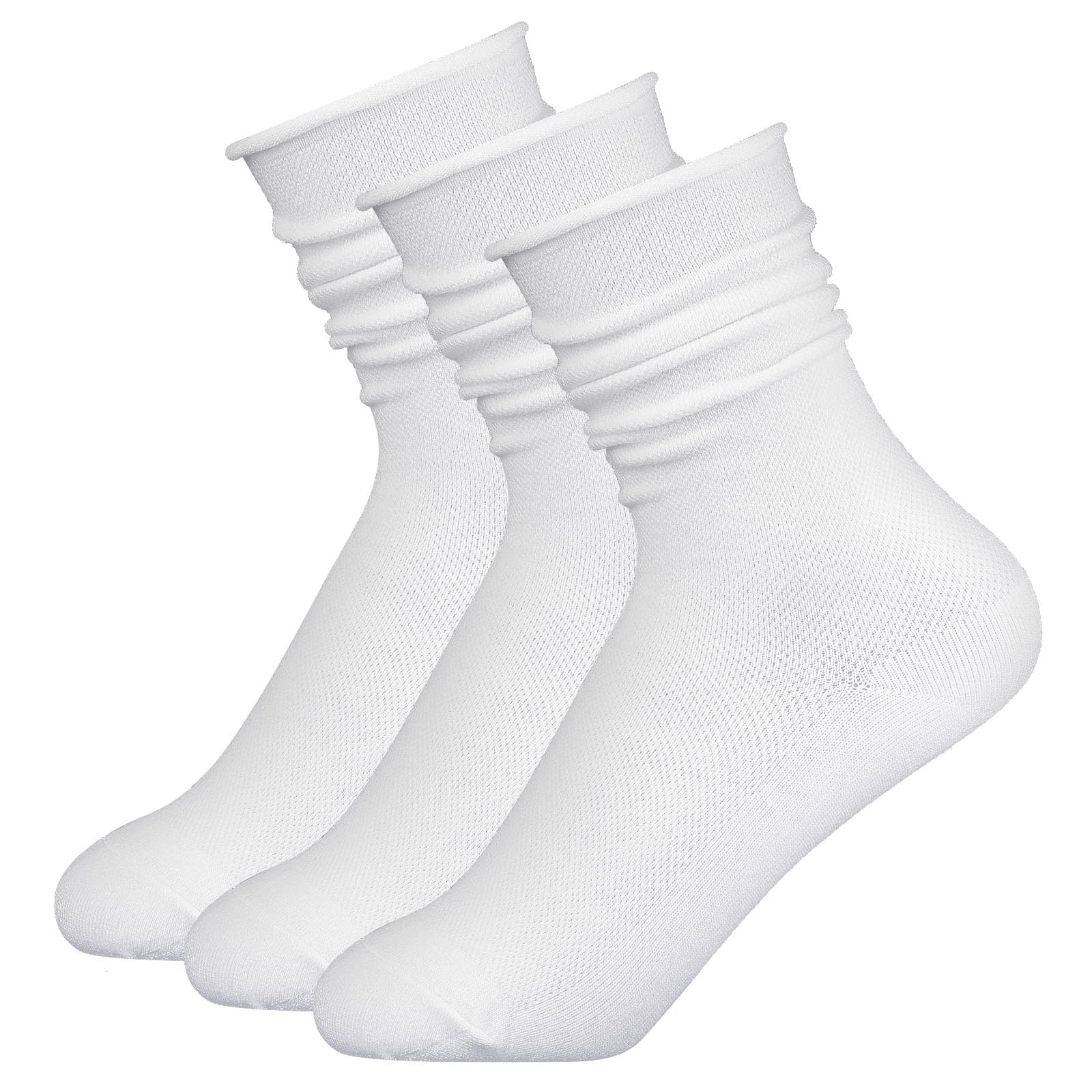 Lusofie 3Pairs White Slouch Socks for Women, Cotton Crew Scrunch Socks with Seamless Toe Slouchy Long White Socks for Women Teen Girls