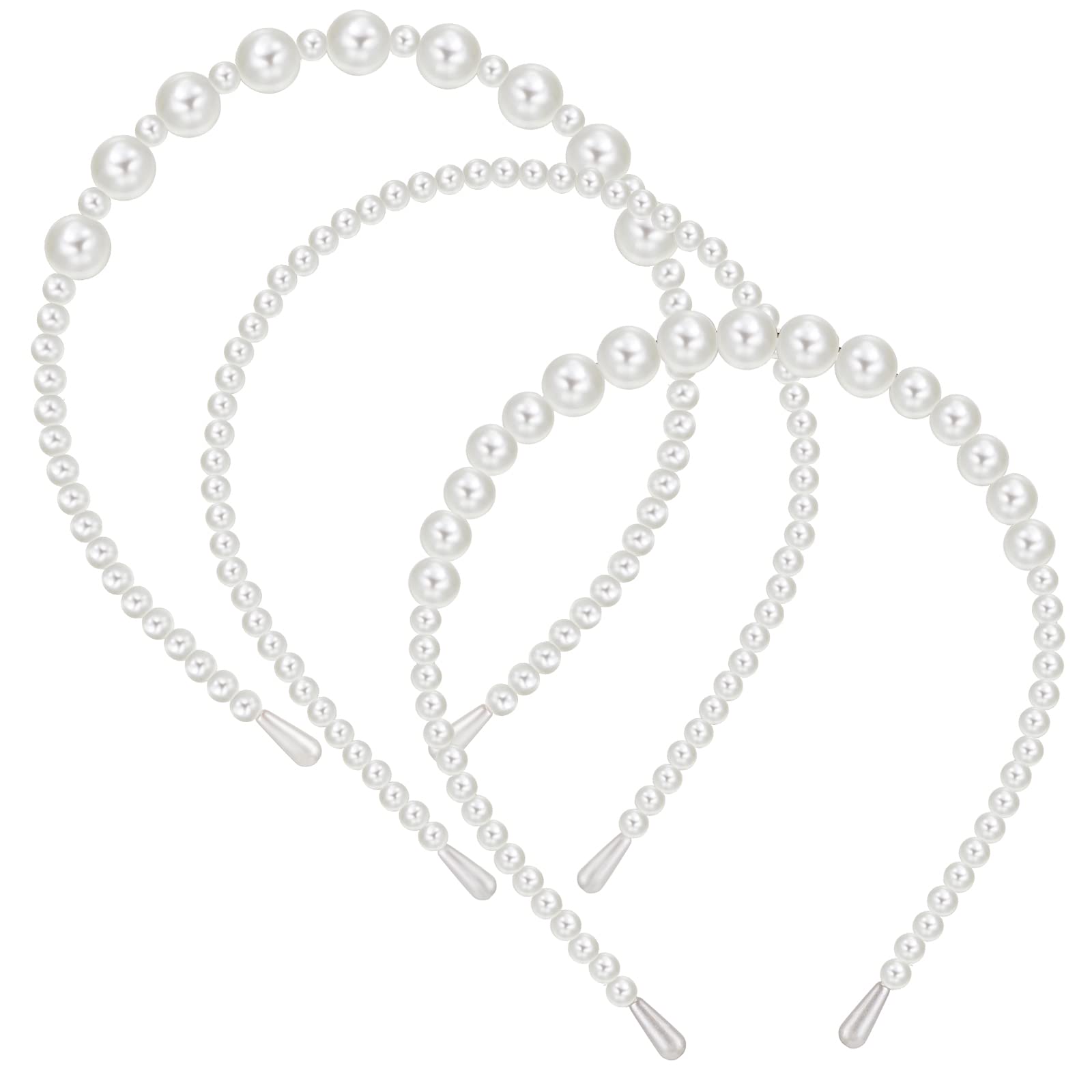 Lusofie 3Pcs Pearl Headband White Faux Pearl Headband Hairbands Bridal Hair Hoop Pearl Fashion Pearl Headbands for Women Girls