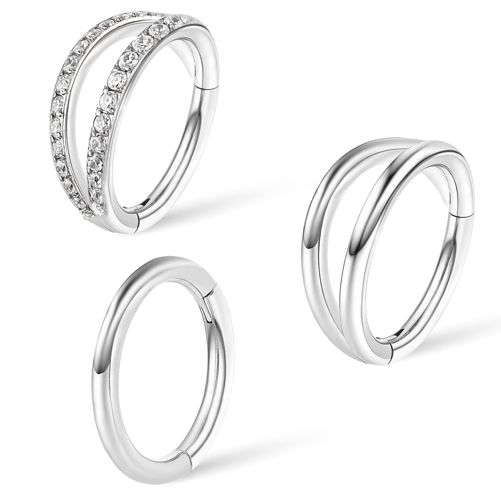 Lusofie 3Pcs Silver Hinged Hoop Earring Nose Ring Hoop Surgical Steel 18G Clicker Earring Hoops Piercing Jewelry for Women Men(1x 8MM)