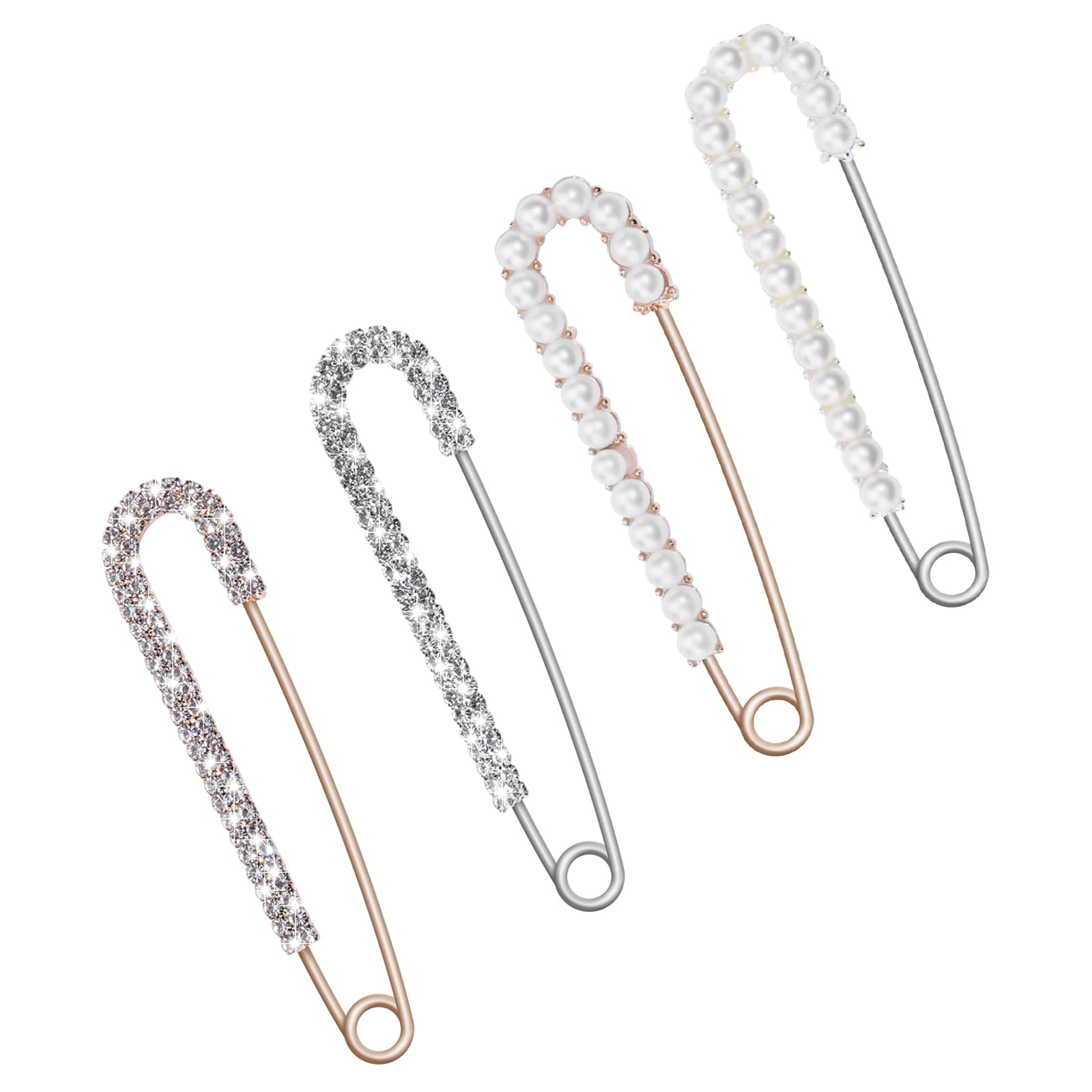 Lusofie 4 Pieces Brooch Pins Pins Sweater Shawl Clips Faux Crystal Brooch Safety Pins Brooches Women Faux Imitation Pearls Rhinestone Crystal Brooch Safety Pins