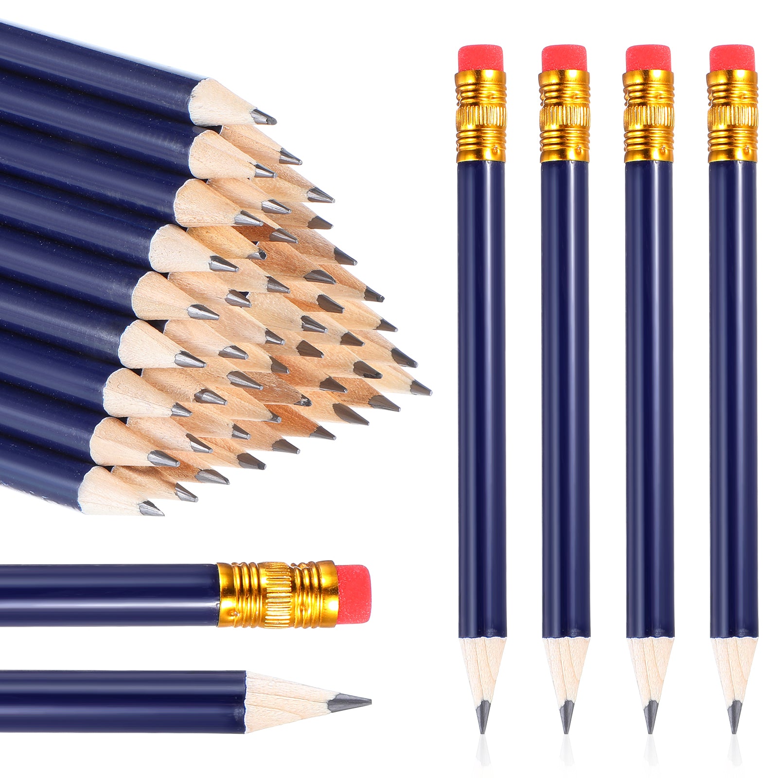 Lusofie 48 Pcs Mini Pencils Golf Pencils with Erasers Half Pencils Bridal Shower Pencils HB Graphite Pencil for Students Designers Architects School Office(Dark Blue)