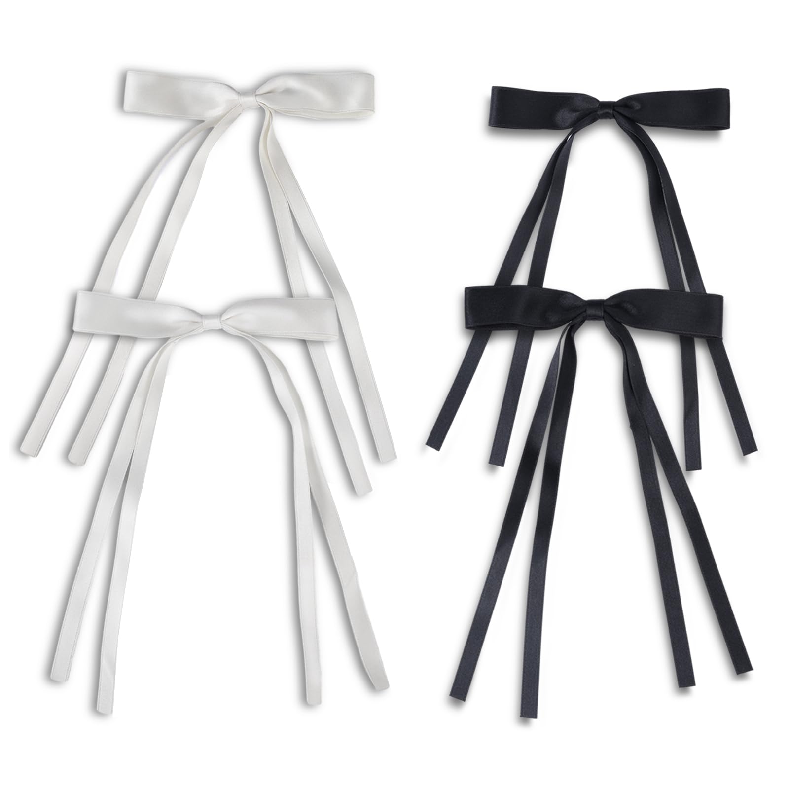 Lusofie 4pcs Bow Hair Clips with Long Tail Hair Bows Tassel Ribbon Hair Bow Clips Hair Bows for Women Girls(white black)