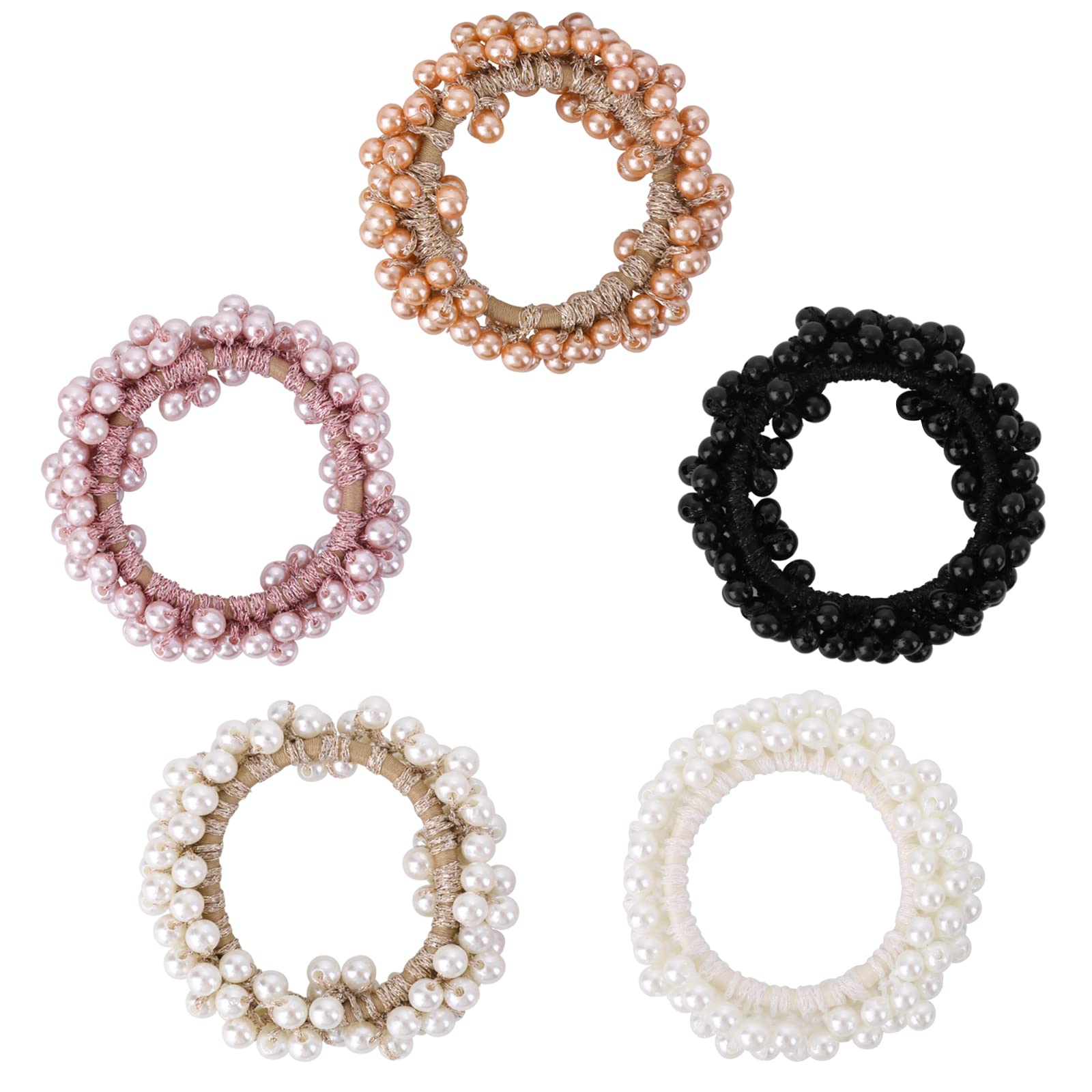 Lusofie 5Pack Pearl Hair Ties Elastic Weave Hair Scrunchies Stretch Bead Hair Rope Hair bands Ponytail Holder Hair Accessories for Women and Girls