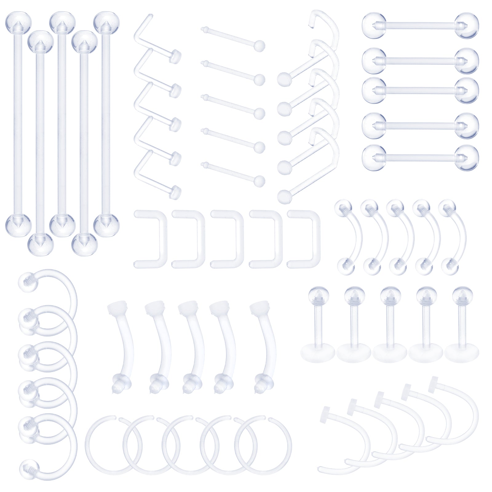 Lusofie 60 Pcs Clear Septum Piercing Kit Clear Piercing Retainer Clear Nose Studs Clear Piercing Jewelry Plastic Nose Rings for Surgery