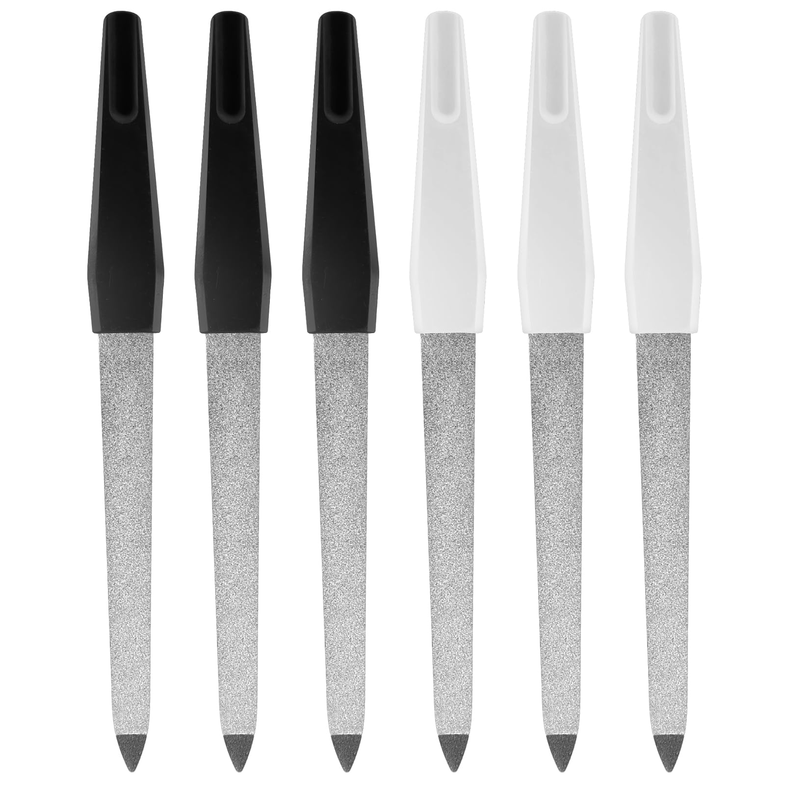Lusofie 6Pcs Professional Diamond Nail File Double Sided Nail Files Metal Nail File with Non-Slip Handle Manicure Tool Accessories for Home Salon