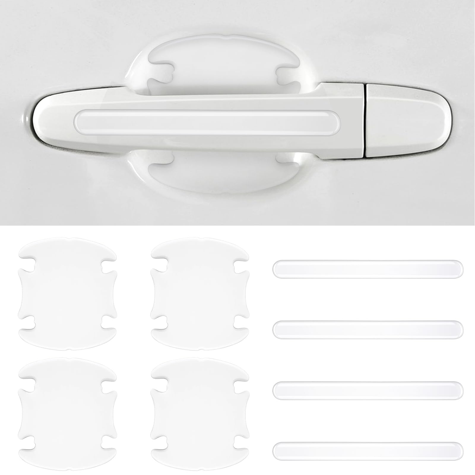 Lusofie 8Pcs Car Door Handle Protectors White Universal Car Door Handle Scratch Protection Cover Waterproof Guard Film Stickers Paint Guard Prevent Scratches