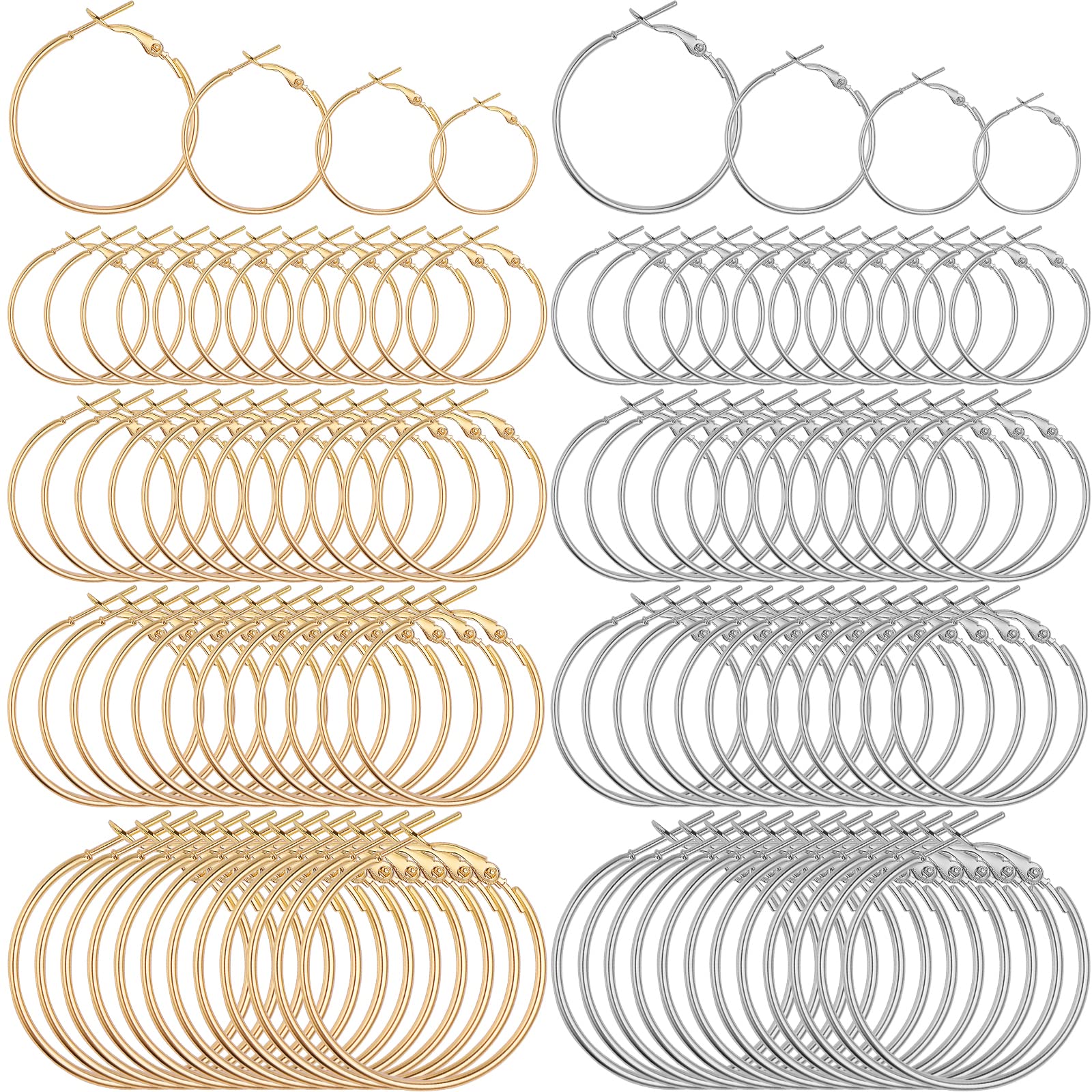 Lusofie 96Pcs Earring Hoops for Jewelry Making Round Earring Hoops Open Beading Silver Gold Hoop Earrings for Jewelry Making DIY Crafts 20mm 25mm 30mm 40mm