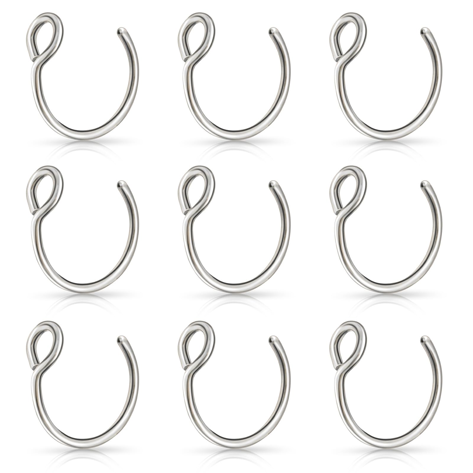 Lusofie 9Pcs Fake Nose Rings,Fake Nose Ring Hoop Stainless Steel Nose Hoop for Faux Lip Septum Nose Ring Set