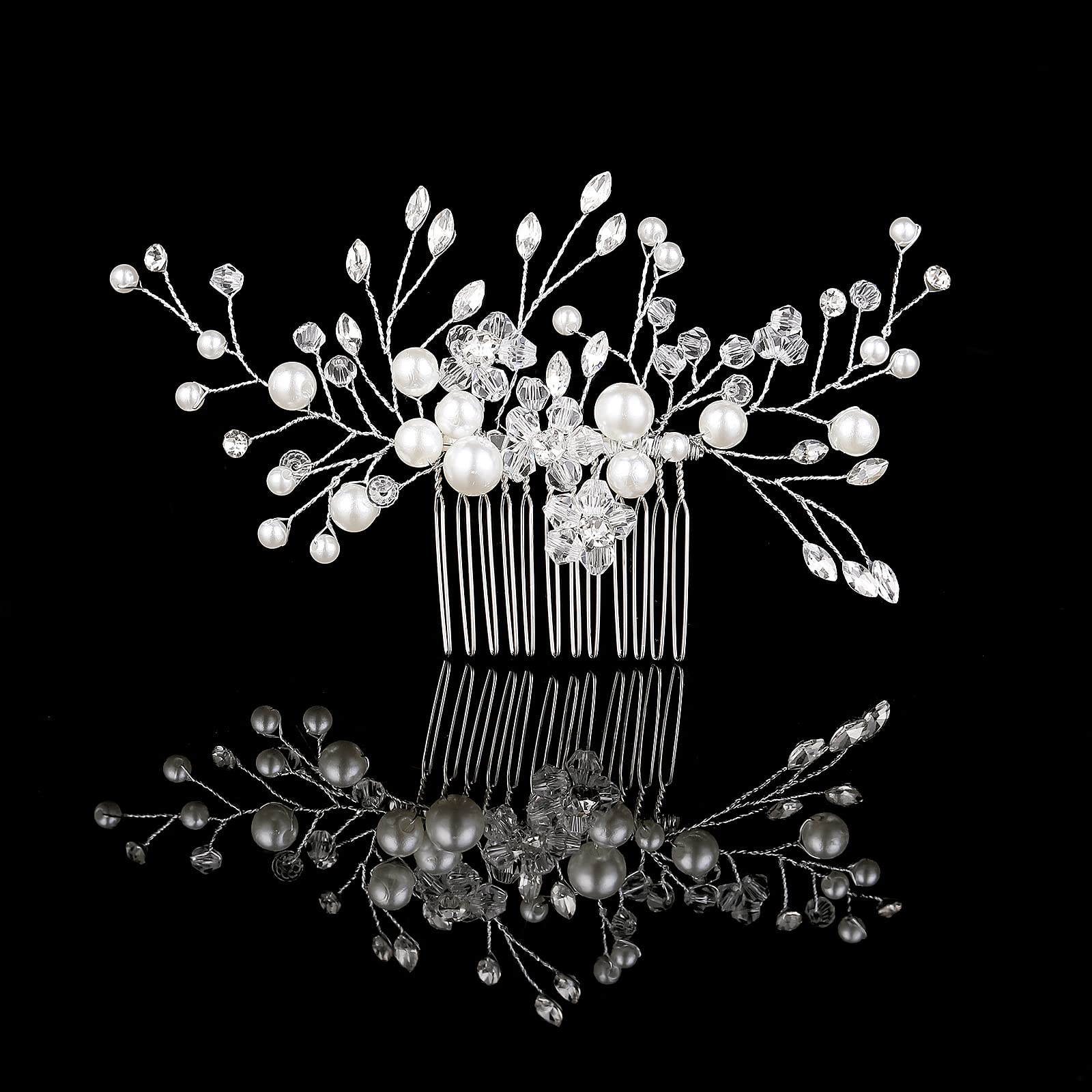 Lusofie Bridal Wedding Hair Combs Rhinestone Pearl Bridal Hair Comb Slides Silver Wedding Hair Accessories for Brides Women and Girls