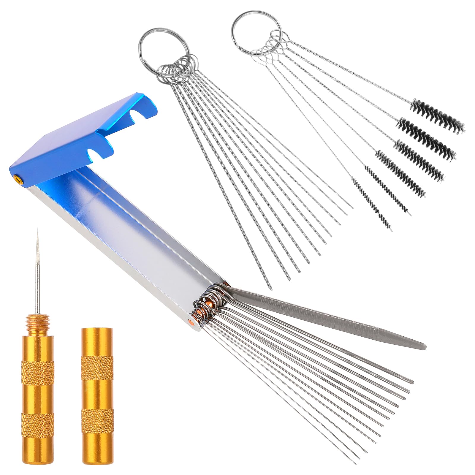 Lusofie Carburetor Carbon Dirt Jet Remove Cleaner, 13 Cleaning Wires Set + 5 Nylon Brushes + 10 Cleaning Needles + 1 Sharp Pick Torch Tip Cleaner Repair Tools Set for ATV Moped Welder Carb Spray