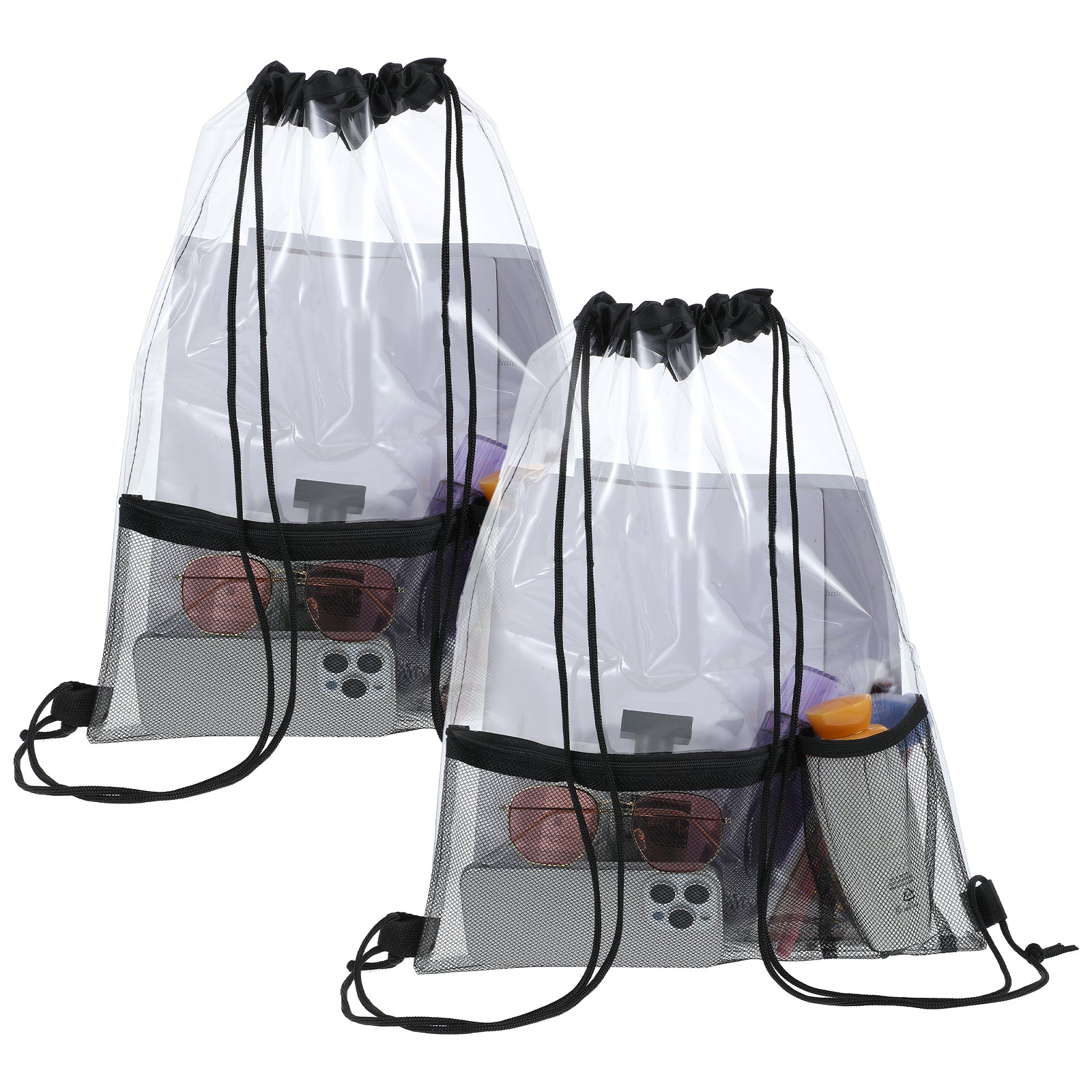 Lusofie Clear Drawstring Gym Bag See Through Transparent Swimming Bag PVC Mesh Bags Two in One,Two openings for Easy Access Drawstring Bags for Concert Sport Festival Travel Work