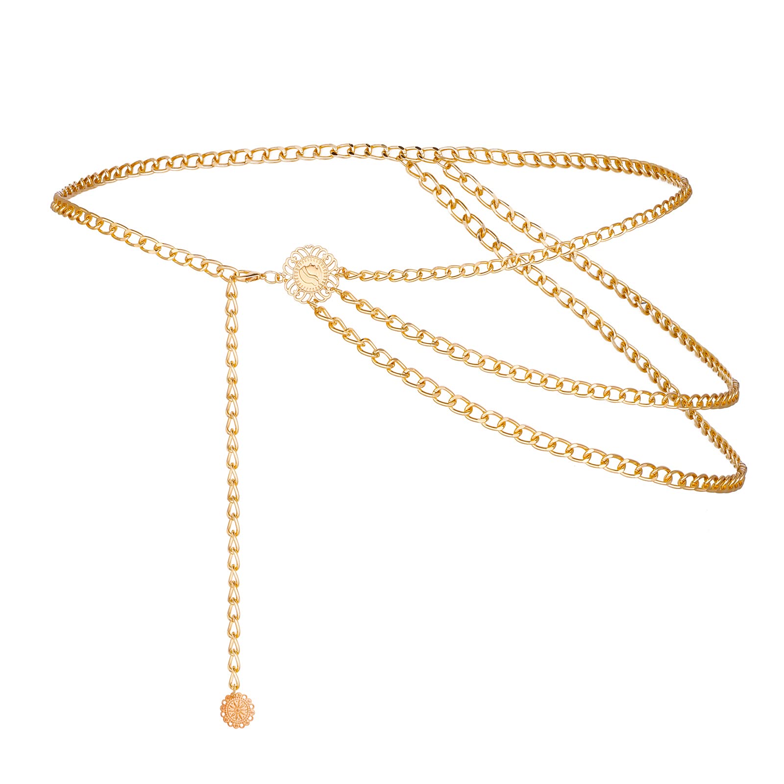 Lusofie Gold Waist Chain Belt Metal Multilayer Chain Belt Adjustable Gold Belt Chain for Women Dresses Jeans Trousers