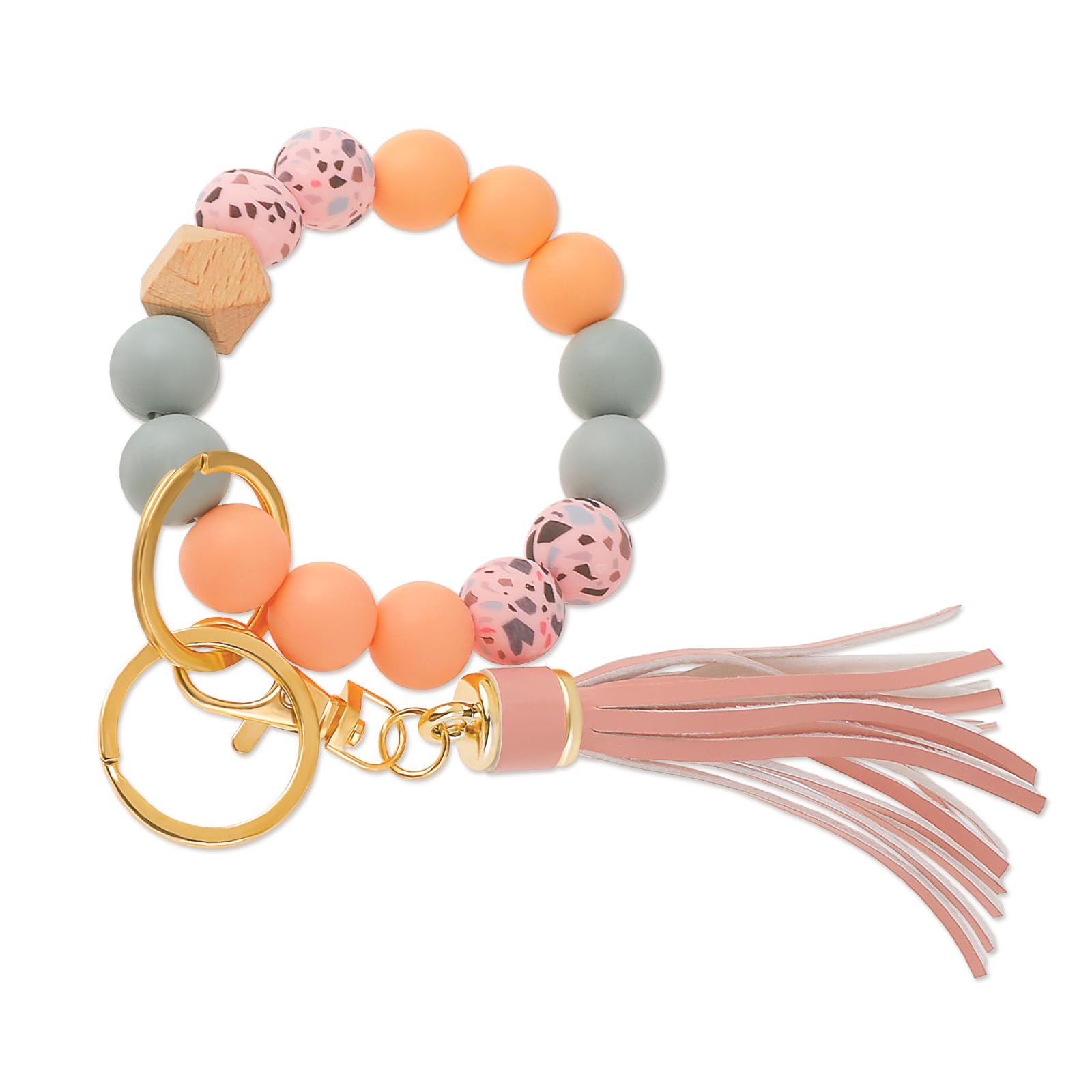 Lusofie Key Chain Wristlet Bracelet Silicone Beaded Key Chain Wristlet with Leather Tassel Wristlet Keychain Car Key Chain Accessories for Women Girls