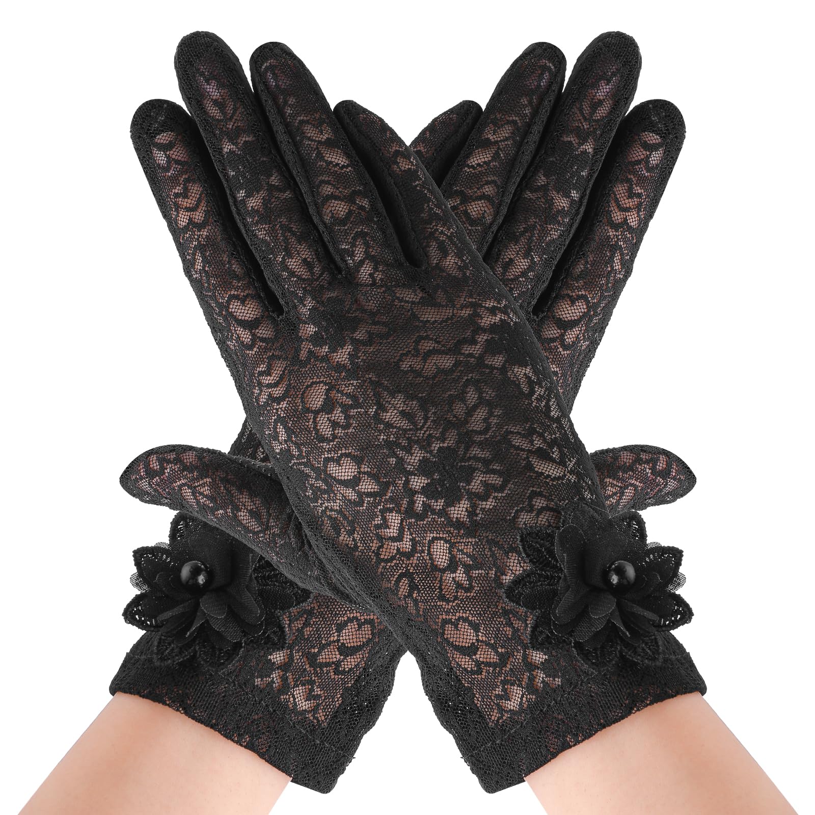 Lusofie Lace Gloves for Women Short Floral Gloves Fingerless Ladies Gloves Elegant Womens Gloves Sheer for Wedding Party(Black)